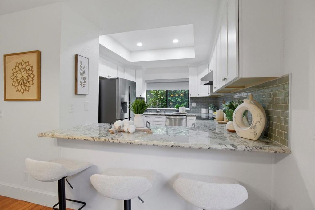 Beautifully remodeled end-unit townhouse with an expensive wraparound yard that feels like a single family home. Spacious 1618sf featuring large 3BR/2.5BA light and bright with an open floor plan, elegant flooring, recessed lighting and a cozy fireplace. The Remodeled kitchen offers abundant cabinetry, granite countertop and top of the line stainless appliances. The dining area features an open breakfast/wine bar which connects to specious living room with sliding glass doors on two sides, opening to a great low maintenance backyard. A designer half-bath is conveniently located on the first floor. Upstairs features 3 large rooms with an oversized primary suite that can accommodate a large king size bed plus room for computer desk along with an updated bath. The Laundry is conveniently concealed upstairs. Rare, extra-large wraparound yard with two patios ideal for outdoor dining/entertaining or relaxing. Two-car garage with additional storage. HOA amenities include a swimming pool, tennis court, playground, clubhouse, and a walkway along the lagoon. HOA covers water, sewer, garbage, roof, fencing& exterior maintenance. Great location, near lagoon walking trails and within walking distance to FC Elementary School and the new Osaka Japanese Supermarket. Easy access to HWY 101&92.