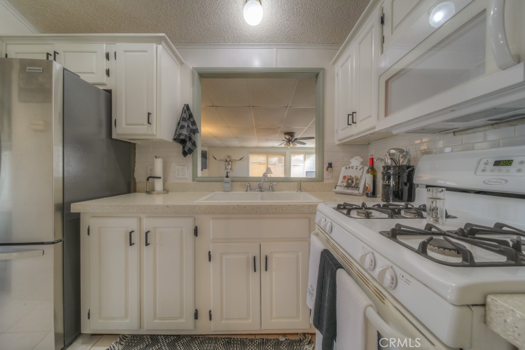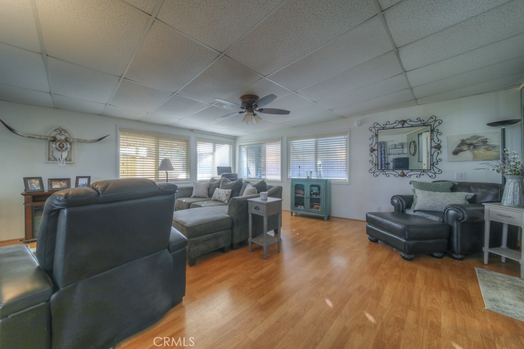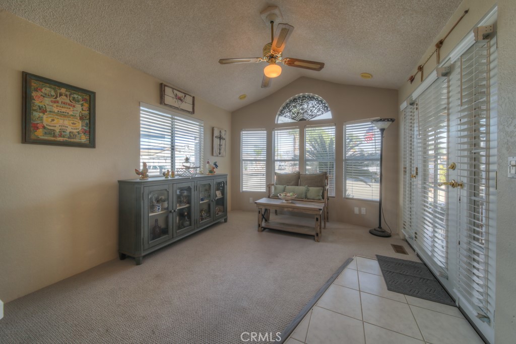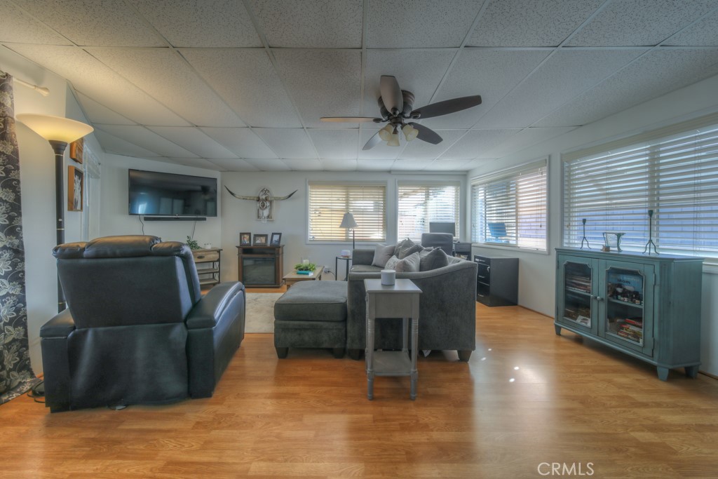 Welcome to the Desired Mountain Shadows RV Resort! A Gated 55+ community where you own the land beneath your home. This Unique home is one of the largest in the community. Its large living room is approximately 17x19, adding approximately 323 sq ft, and opens to a double-door exit to your outdoor deck, ideal for entertaining guests or relaxing after a long day at the community pool. The kitchen has stone countertops and newer white subway tile backsplash. The 1-bedroom includes mirrored wardrobe doors and a new fan lamp. The bathroom has been updated with a walk-in shower and is well maintained. Some home features include newer paint, carpet, and blinds. It's ready for you to move right in. Oversized lot approx 2614 sqft with a covered carport and shed with washer/dryer hookups. Community has 2 clubhouses, a heated saltwater pool, spas, indoor and outdoor kitchens, a billiards room, shuffleboard, an auditorium, all this and more. Low HOA of $292 a month, which includes water, trash, sewer, basic cable, and internet.
