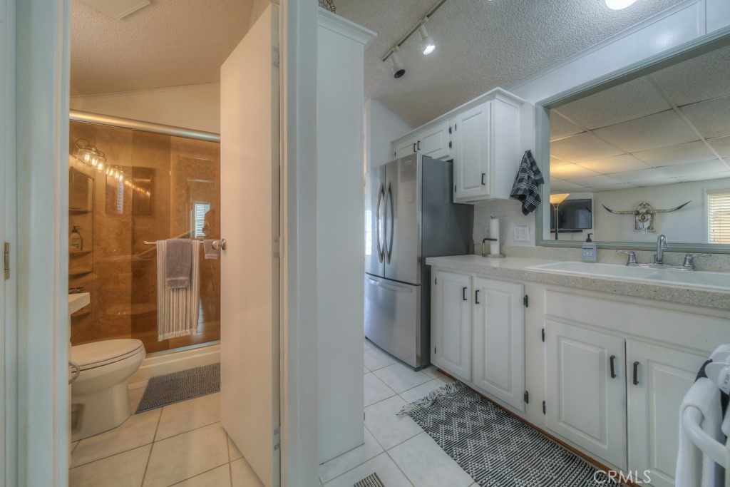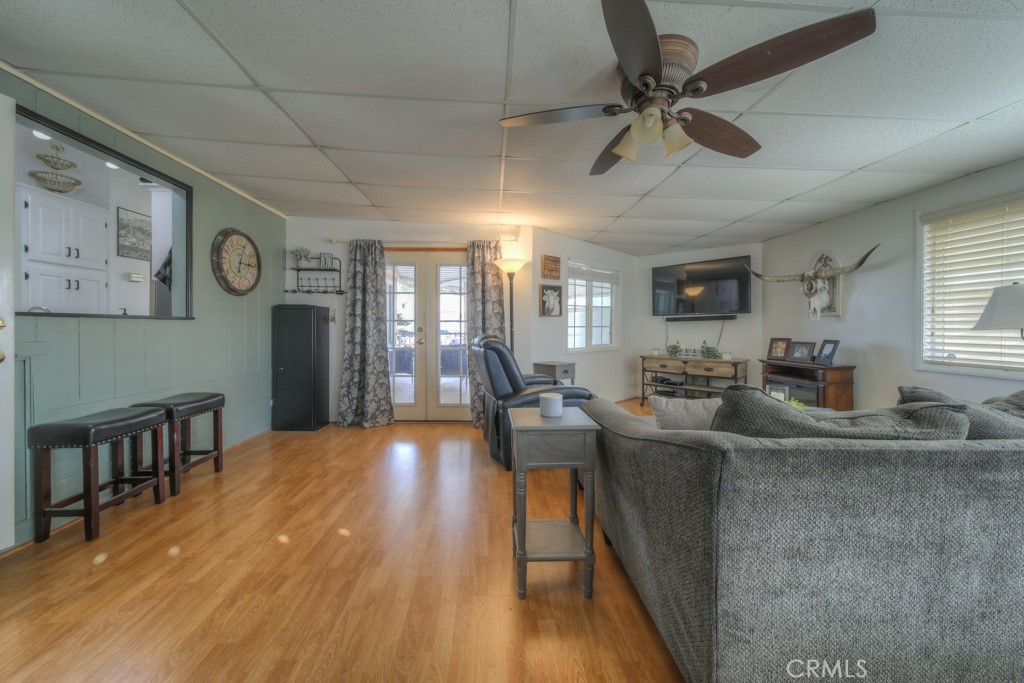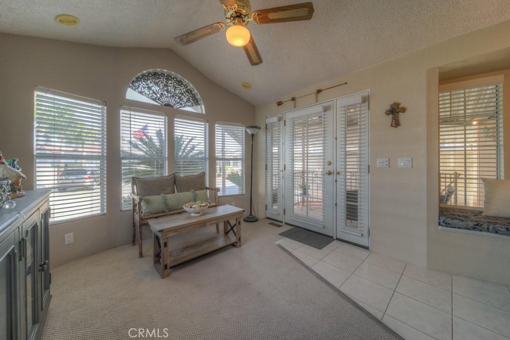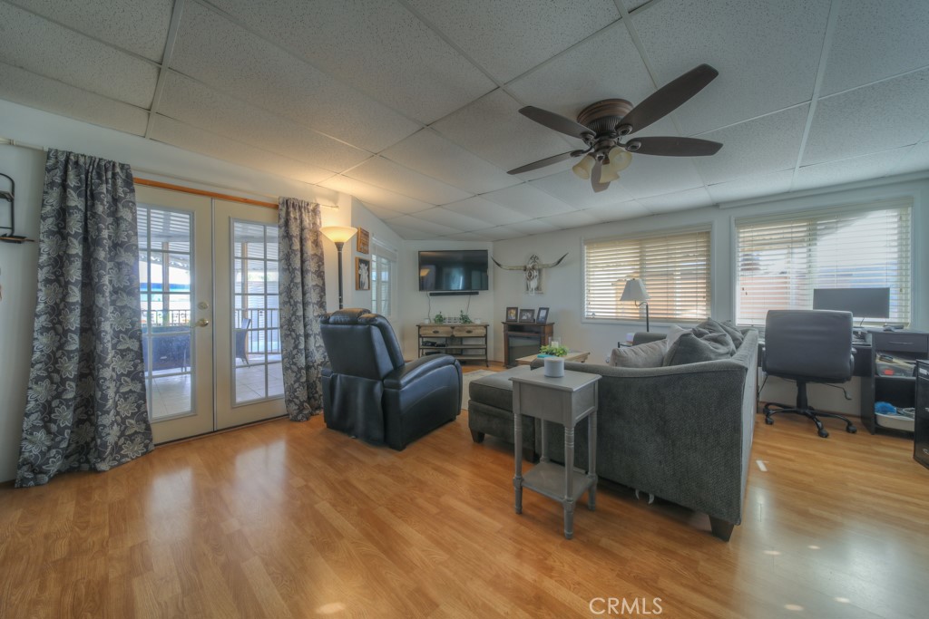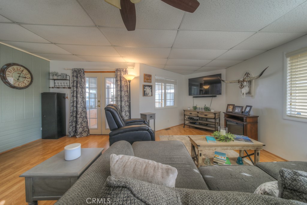 Welcome to the Desired Mountain Shadows RV Resort! A Gated 55+ community where you own the land beneath your home. This Unique home is one of the largest in the community. Its large living room is approximately 17x19, adding approximately 323 sq ft, and opens to a double-door exit to your outdoor deck, ideal for entertaining guests or relaxing after a long day at the community pool. The kitchen has stone countertops and newer white subway tile backsplash. The 1-bedroom includes mirrored wardrobe doors and a new fan lamp. The bathroom has been updated with a walk-in shower and is well maintained. Some home features include newer paint, carpet, and blinds. It's ready for you to move right in. Oversized lot approx 2614 sqft with a covered carport and shed with washer/dryer hookups. Community has 2 clubhouses, a heated saltwater pool, spas, indoor and outdoor kitchens, a billiards room, shuffleboard, an auditorium, all this and more. Low HOA of $292 a month, which includes water, trash, sewer, basic cable, and internet.