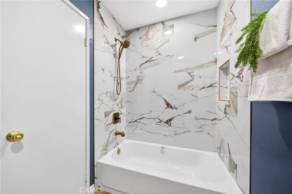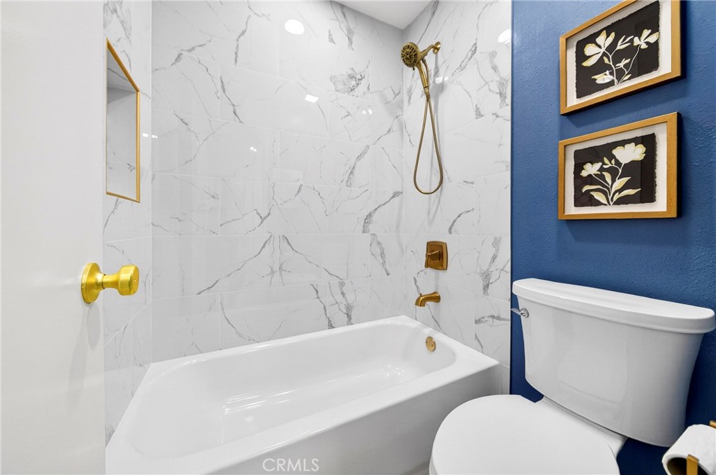 Welcome to this beautifully remodeled 2-bedroom, 2.5-bath condo nestled in the hills of Fullerton’s highly sought-after Westside community. This desirable two-story home offers a tranquil, resort-style setting surrounded by lush greenery, with access to a sparkling pool and relaxing spa that make every day feel like a getaway. Step inside to a bright and inviting living room featuring new SPC flooring and recessed lighting throughout. The formal dining area flows seamlessly into the updated kitchen, complete with brand-new appliances, elegant quartz countertops, and a center island—perfect for cooking and entertaining. A convenient half bath is located downstairs, along with a brand-new stackable washer and dryer (included in the sale) just off the kitchen. Upstairs, you’ll find two spacious primary suites with high ceilings, each offering its own fully renovated bathroom with contemporary finishes—providing comfort and privacy for residents and guests alike. Two assigned carports are conveniently located directly in front of the unit for easy access. HOA dues cover water, trash, fire insurance, and exterior maintenance for added peace of mind. Ideally located near Ralph B. Clark Regional Park, a golf course, grocery markets, restaurants, and major freeways, this home offers the perfect blend of comfort, convenience, and lifestyle.