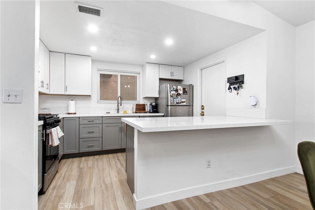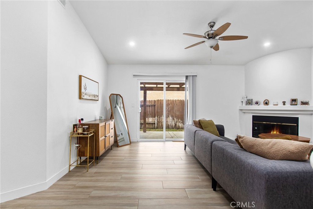 Welcome to 131 Mahogany St! This beautiful home offers 3 bedrooms, 2 bathrooms, and interior updates designed for low-maintenance living. Wood-look tile flooring runs throughout the main living areas for durability and visual continuity. The remodeled kitchen features shaker cabinets, quartz countertops, and updated finishes that provide clean lines and functional workspace. Both the primary and guest bathrooms have been fully renovated with shaker cabinetry, quartz counters, and newly tiled showers. The floorplan provides defined living and dining areas with direct access to the backyard. This home also features LED recessed lighting and newer windows. Located within a gated community, residents have access to a community park area that includes BBQ stations, covered picnic tables, playground, and basketball court. Convenient access to local shopping, dining, and daily services throughout San Jacinto. Includes 3D virtual tour for remote viewing.