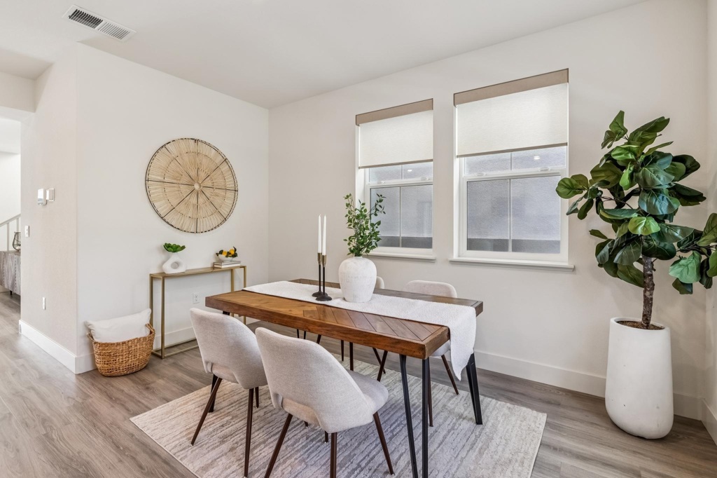 Welcome to 28957 Ashwell Avenue, a beautifully upgraded and thoughtfully designed townhouse in the heart of Hayward. Offering approximately 1,885 square feet of modern living space, this home seamlessly blends style, comfort, and functionality across three well-appointed levels. The first level features a private bedroom suite with direct access to a cozy backyard; ideal for guests, multigenerational living, or a quiet home office retreat. On the main level, you’ll find an expansive, light-filled living space designed for both everyday living and entertaining. The spacious kitchen showcases white cabinetry, stainless steel appliances, a large center island, and picturesque mountain views. The adjacent dining area is bathed in natural light, creating a warm and inviting atmosphere. The generous living room opens to a private balcony and is complemented by a convenient half bath. The third level offers a well-designed layout with a comfortable primary suite, a junior suite, and a conveniently located laundry closet for added ease. Located in a highly desirable community with low HOA dues, this exceptional townhome offers space, flexibility, and value in a prime Hayward location.
