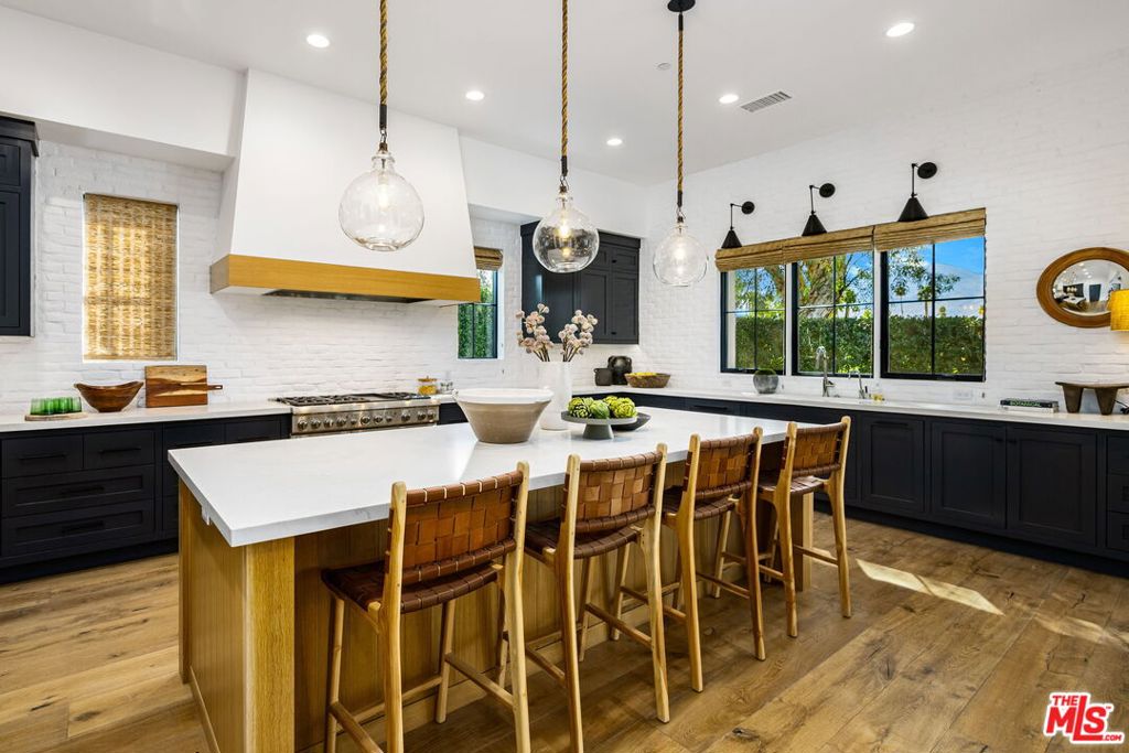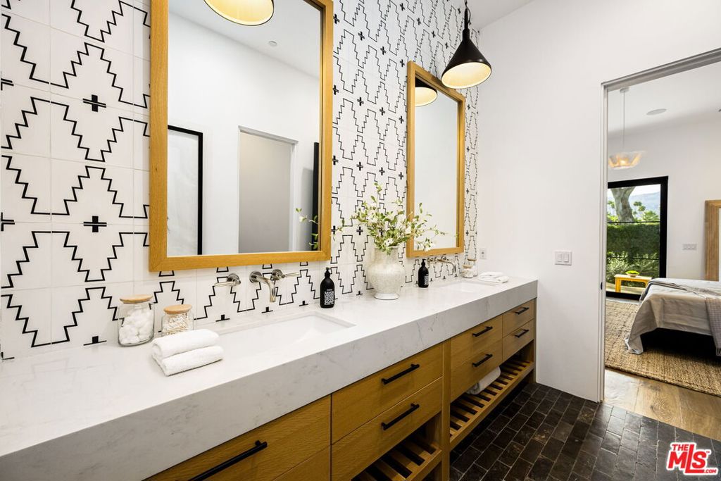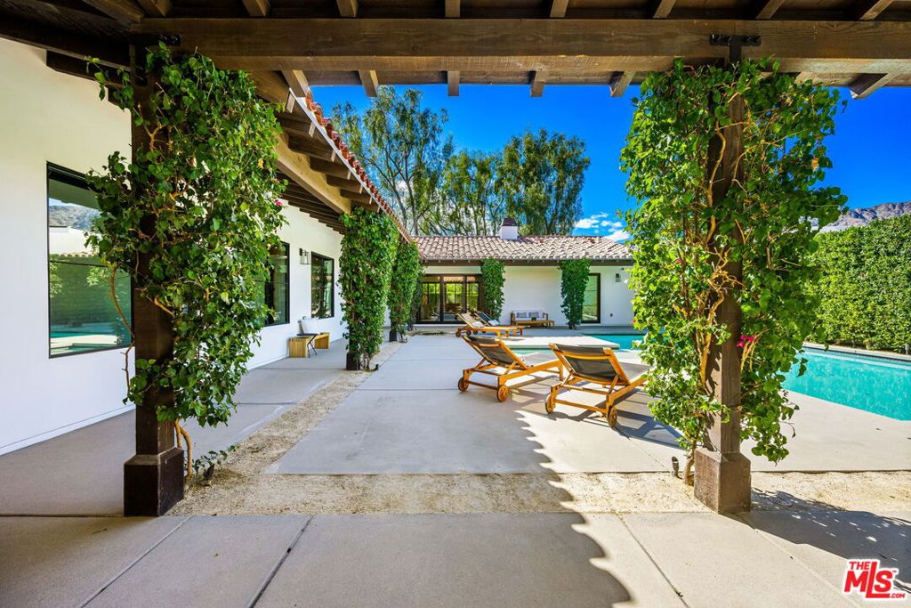 Designed for those who value privacy, quality, and exceptional design, this five-bedroom estate including a spacious detached casita offers refined desert living with panoramic mountain views. The great room features soaring wood-beamed ceilings, European oak hardwood floors, and a designer tile fireplace. The kitchen is appointed with handblown glass lighting, a Thermador custom tower refrigerator, walk-in pantry, custom quartz island, and bespoke cabinetry. Expansive windows and glass doors flood the interiors with natural light while seamlessly connecting to the outdoors. Subtle architectural details, including white brick accent walls and premium finishes throughout, underscore the home's exceptional quality. All five bedrooms are ensuite, including a primary suite with fireplace and a spa-inspired bath. The residence is centered around a private courtyard with pool and spa, framed by sweeping mountain vistas. Situated on the 11th fairway of La Quinta Country Club, a PGA host venue for The American Express tournament, across the street from La Quinta Resort for immediate access to some of the finest restaurants in the desert, 10 minutes to Coachella and Indian Wells Tennis Garden, this property offers a rare combination of privacy, architectural integrity, and premier location, location, location!
