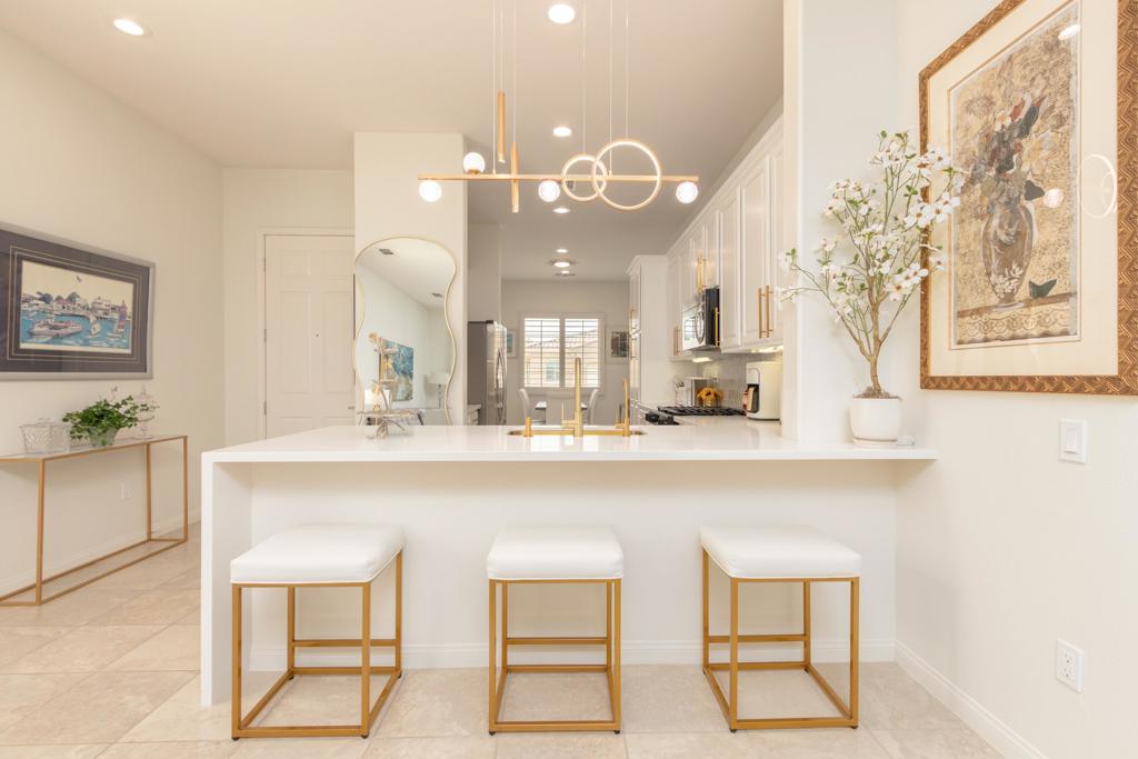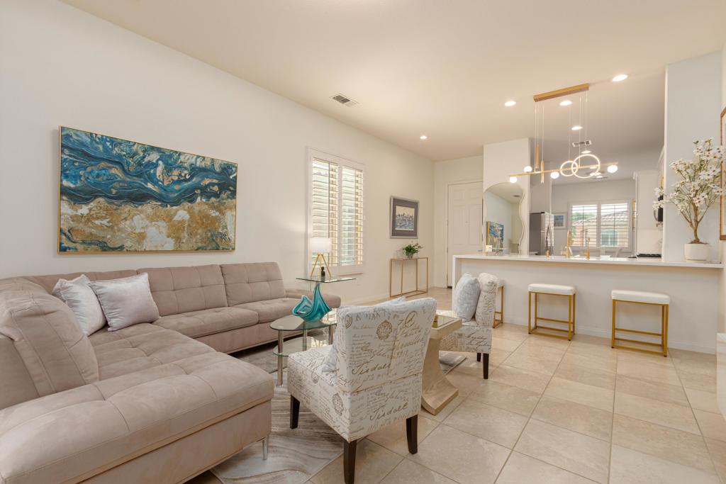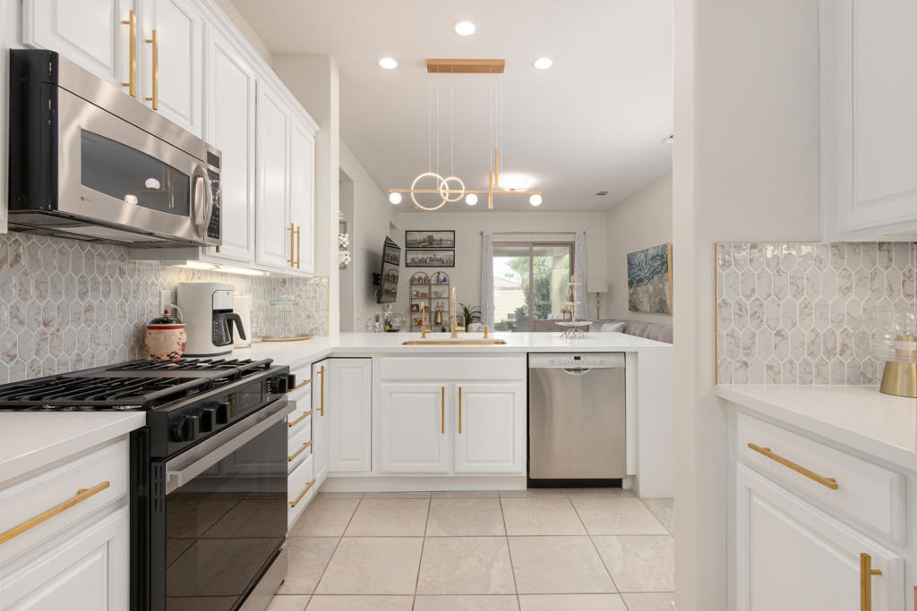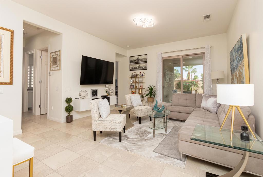 This beautifully remodeled home is move-in ready and packed with modern upgrades throughout. Featuring 2 bedrooms, 2 bathrooms, and a versatile den; complete with a custom tall barn door, and wardrobe for which the den can be used as a 3rd bedroom. This home offers both comfort and style. Enjoy brand new luxury vinyl wood flooring that complements the existing natural tile, creating a cohesive look. The entire home has been thoughtfully updated with recessed can lighting, four new ceiling fans, and new electrical outlets for added convenience. The spacious kitchen showcases stunning new quartz countertops, abundant cabinet space, and updated fixtures. In the living room, a sleek floating fireplace adds a contemporary touch of ambiance to the home. Additional upgrades include new faucets in both bathrooms and the kitchen, elegant window shutters, and energy efficient double pane windows. You can step outside to a low-maintenance backyard with artificial grass and a new sprinkler timer, perfect for easy outdoor enjoyment. The yard has been also beautifully manicured with rock and lush green trees reflecting our natural desert environment. Sun City Shadow Hills is an active lifestyle 55+ golf community that is surrounded by stunning mountain views. While exploring the ground, you'll notice the meticulously kept Schmidt-Curley, Inc. design 18 hole golf course. Included in the breathtaking gold landscape are the beautiful ponds, which add nothing but tranquility to your day. Unwind in the clubhouse, a hub of weekly fun activities and connection, or visit the library to nurture your mind. Maintain mind and body health by using the fitness center or many other amenities which include: tennis, pickle ball, bocce and so much more. Call for more information.