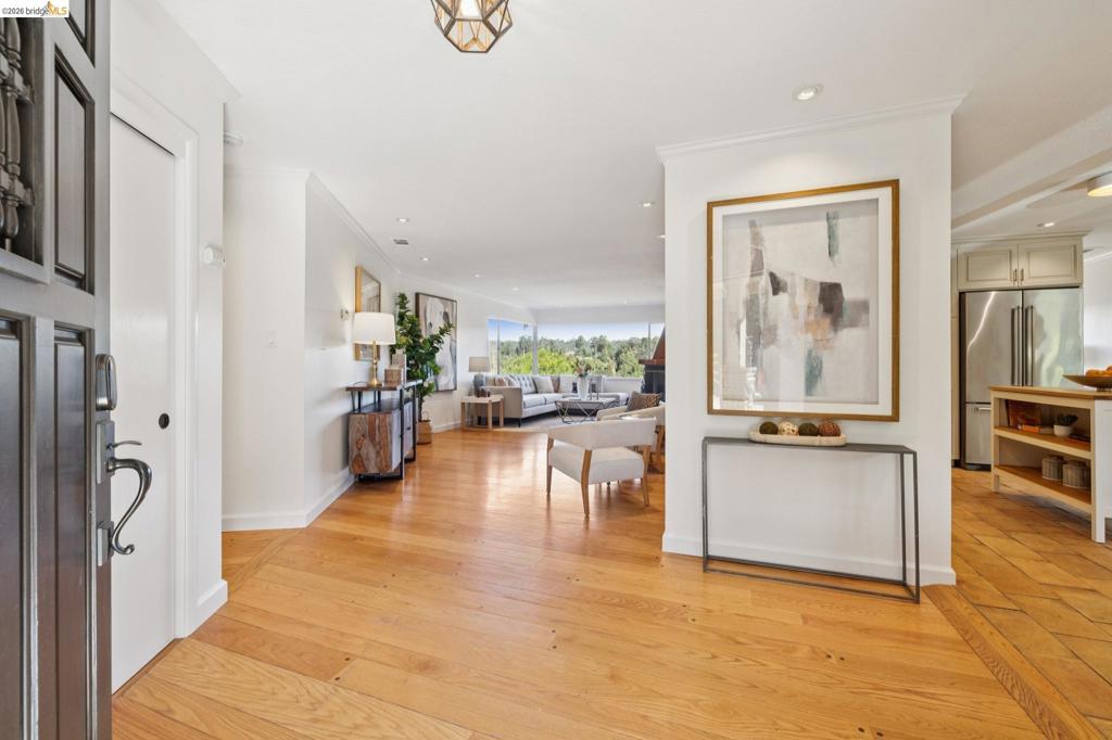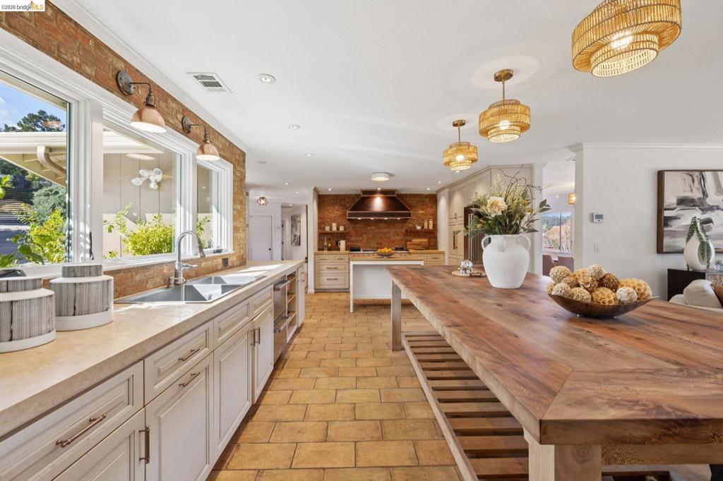 This one checks all of the boxes & more; sunny, expansive views, space galore in & outdoors for every vision & hobby you may have! One of a kind absolutely stunning gated single level rancher in full urban farmstead glory sited on a serene sun drenched picture perfect 1.04 acre panoramic valley view lot! Spacious 4+ beds w/ 3 baths (2 en-suite), office & formal/informal living & dining rooms. Chef's paradise French inspired gourmet kitchen w/ massive sycamore harvest table, Lacanche range, imported French floors, brick masonry & custom copper hood. A rustic fireplace is perfect for those chilly evenings. Enjoy the scenic vignettes overlooking the hills, goat pastures, custom chicken coop, bountiful gardens, & mature fruit trees. This is the place to enjoy/entertain friends & family w/ no neighbors in sight & endless in/outdoor settings. Zoned for Horses. Plenty of space to develop an ADU, Barn & garage. Extensive updates include roofing, redwood decks, 200amp panel, tankless water heater, dual pane windows, HVAC, etc. Mins to local Coffee & Tea house Charlie May, Lake Chabot & Sequoia country club, downtown Oakland, airport, East Bay regional parks & all that makes the Bay area great. Gems like this are once in a lifetime! Views: Ridge