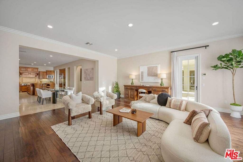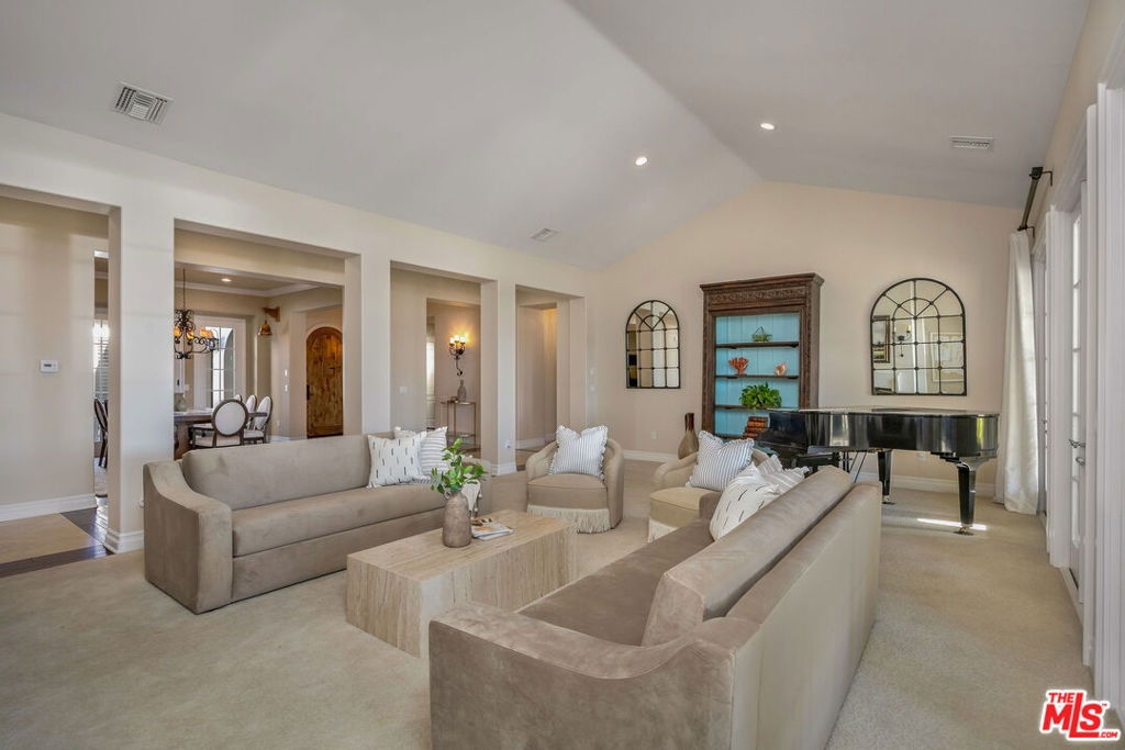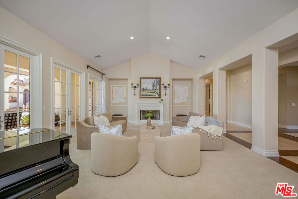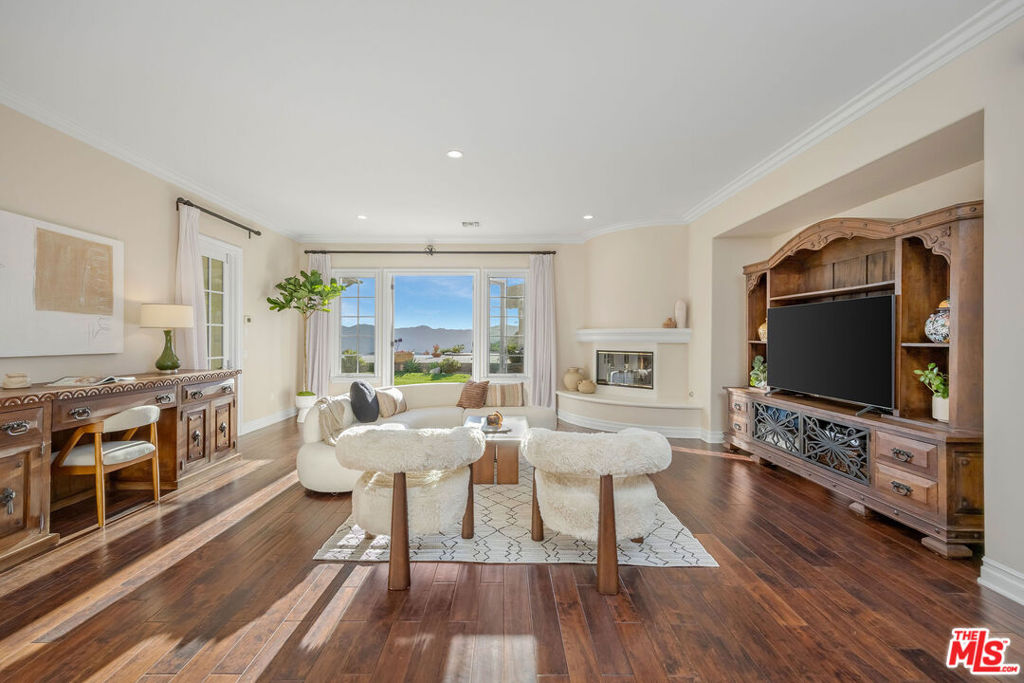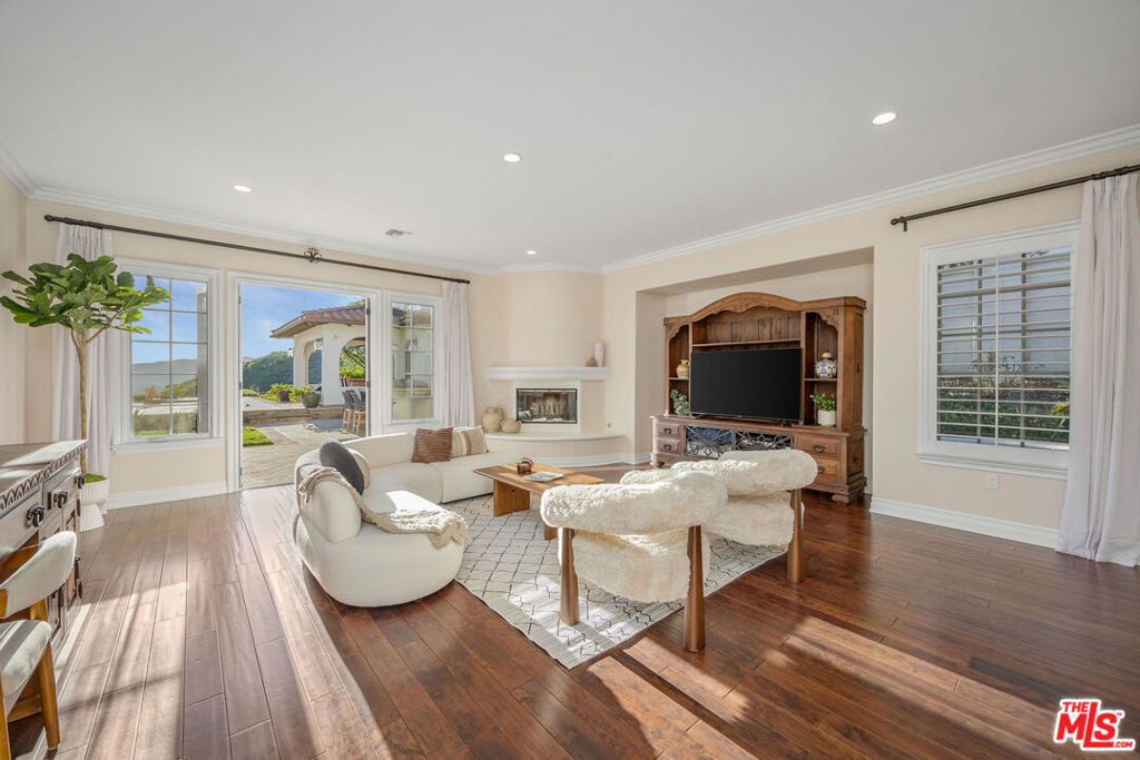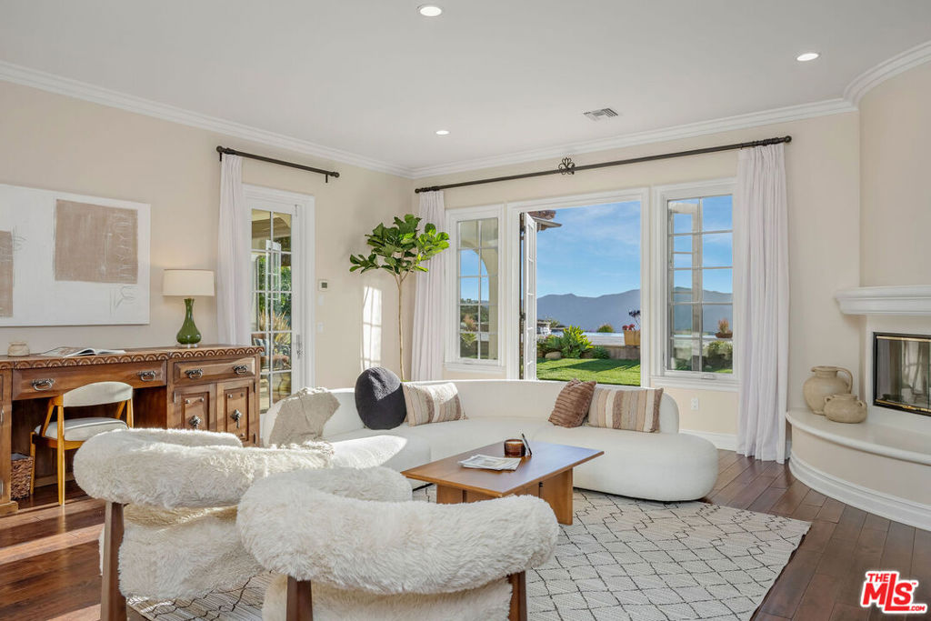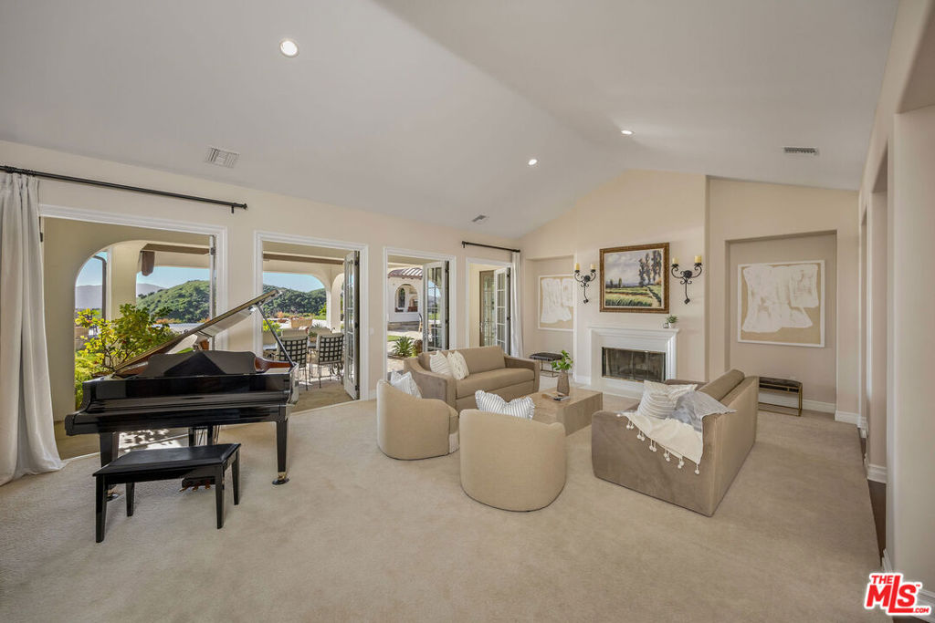 Set behind the gates of one of Calabasas' most coveted guard-gated communities, this exceptional single-story estate offers an uncompromising expression of privacy, scale, and refined California elegance. Perfectly positioned against the protected backdrop of the Santa Monica Mountains Conservancy, the property commands unobstructed views and a rare sense of tranquility. A romantic courtyard entry introduces the home with understated sophistication, where custom wrought iron details and a statement fireplace create a memorable arrival. Inside, soaring vaulted ceilings, oversized architectural openings, and expansive French doors define the interiors seamlessly blurring the line between indoors and out while flooding the residence with natural light. Designed for effortless living, the floor plan unfolds with intention and balance, anchored by a secluded primary suite featuring its own fireplace, private sitting lounge, and serene mountain vistas. Each secondary bedroom is ensuite, thoughtfully scaled, and designed for ultimate comfort. Multiple fireplaces throughout add warmth and timeless character.At the heart of the home, a chef's kitchen pairs elevated design with professional performance an oversized island and top-tier appliances creating a natural gathering space equally suited for intimate mornings or sophisticated entertaining. The grounds evoke a private resort experience, complete with a sparkling pool and spa, outdoor culinary pavilion, and a detached cabana with fireplace and outdoor bath. A separate guest suite with its own entrance offers elevated flexibility for extended stays or private accommodations.Residents enjoy access to exclusive community amenities including concierge-level services, a private clubhouse, fitness center, tennis and pickleball courts, basketball court, resort-style pool, and curated recreation areas all within the highly regarded Las Virgenes School District. A rare offering defined by quiet luxury, architectural grace, and an unrivaled sense of place.