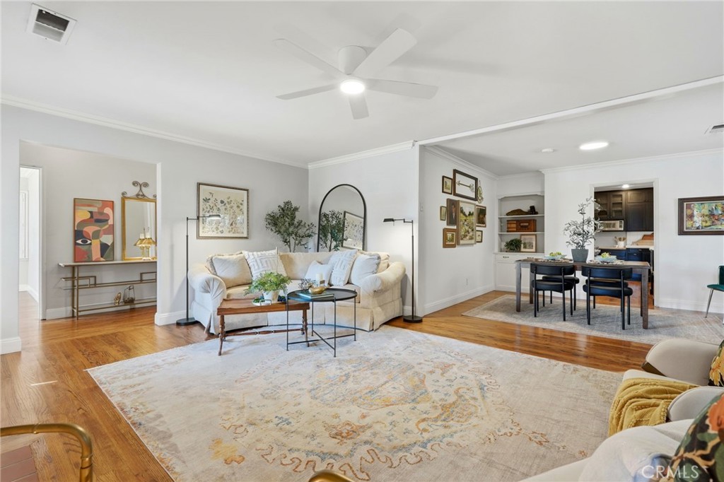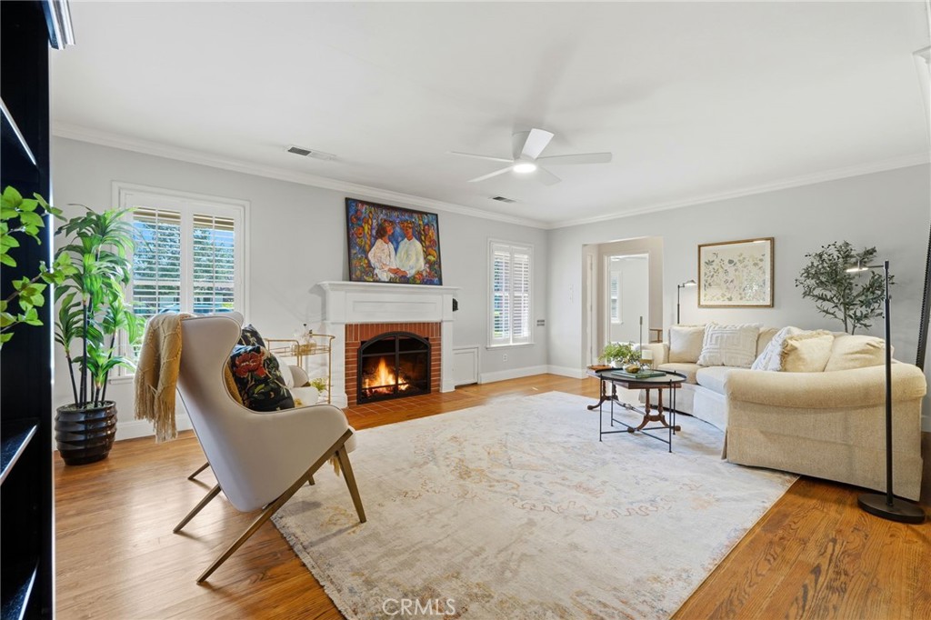 Timeless 1940s charm meets modern comfort at this beautiful home nestled in the heart of Visalia’s beloved Beverly Glen neighborhood. Every space in this home reflects the craftsmanship and character that makes homes in this neighborhood so special - thoughtfully maintained while offering the functionality! Step inside to find rich wood floors, plantation shutters, detailed molding, and abundant natural light throughout. The formal living room with a cozy fireplace and wood hearth flows into a charming dining room with built-in bookcase, while the kitchen features a professional 6-burner gas range, stainless steel appliances, wood bar and countertops, and a built-in dining booth, all opening to a spacious family room with French doors leading outside.The primary suite offers a peaceful retreat with its own brick fireplace, French doors to the backyard, and an updated en suite bath complete with dual pedestal sinks and a custom tile shower. Two additional bedrooms, a dedicated office space, and generous storage provide flexibility for everyday living. Step outside to your own private oasis featuring a built-in pool, covered patio, and mature surroundings ideal for entertaining or unwinding. The detached guest house includes a bedroom area, bathroom, kitchenette, private covered patio, and laundry room, perfect for extended family, visitors, or flexible living arrangements. This is a rare opportunity to own a piece of Visalia charm in one of its most quaint and cherished neighborhoods.