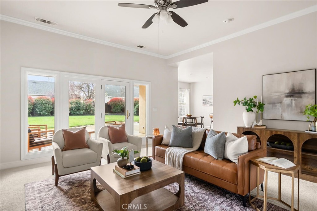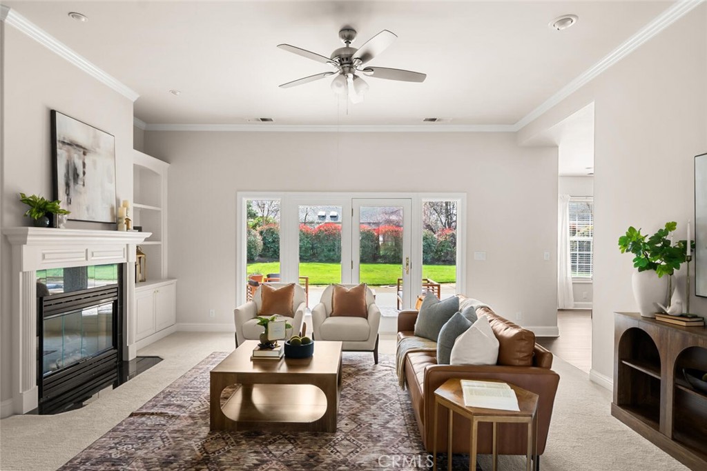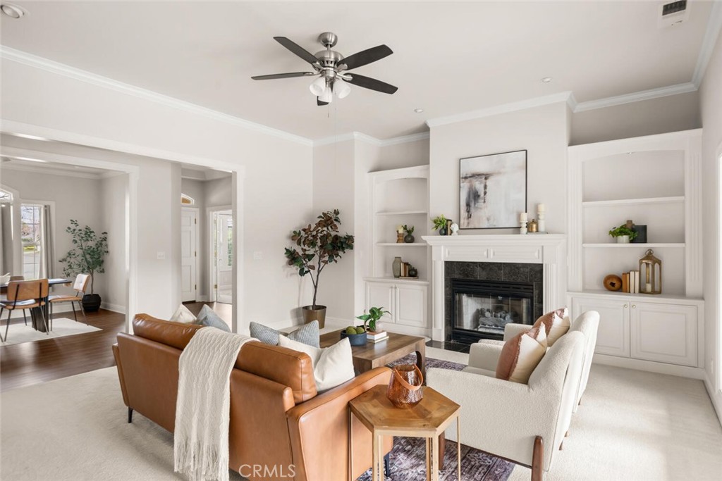 Ideally situated near schools, shopping, and popular dining options, this picture-perfect home offers quality craftsmanship and thoughtful design throughout. Originally built as the builder’s personal residence, it showcases exceptional attention to detail and everything you need for comfortable living. Step inside to discover rich laminate flooring, abundant natural light pouring through numerous windows, elegant crown molding, and a well-designed split floor plan that maximizes every square foot. The spacious living room serves as the heart of the home, highlighted by a stunning fireplace framed by custom built-in shelving and storage. The fully equipped kitchen is ready to impress, featuring warm wood cabinetry, tile countertops, stainless steel appliances, a gas cooktop, a center island with vegetable sink, and a charming breakfast nook, perfect for enjoying your morning coffee. Just off the entry, a private office provides the ideal space to work from home or tackle daily tasks with ease. When it’s time to unwind, retreat to the generously sized primary suite offering a beautiful bay window, private backyard access, a large walk-in closet, and a spa-inspired en suite bath complete with dual sinks, a soaking tub, and a tiled walk-in shower. Additional highlights include ceiling fans throughout, recessed lighting, crown molding, skylights, multiple walk-in closets, and a separate indoor laundry room. The large backyard is designed for entertaining and relaxation alike, featuring a covered patio ideal for barbecues, mature trees for added privacy, and ample lawn space for outdoor activities or pets to roam, with plenty of room to build your dream pool. This exceptional home truly has it all. Don’t miss your opportunity to make it yours!