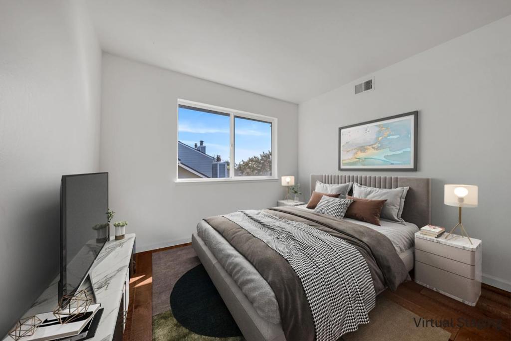 Welcome to a home that makes daily living feel effortless in the heart of Foster City. Step inside and you're met with vaulted ceilings, an airy openness that invites you to slow down, breathe, and settle in. The living room with its cozy fireplace and seamless flow to the dining area and patio creates the perfect backdrop for relaxed evenings, weekend brunches, and gatherings that stretch late into the night. The kitchen is made for real life, cooking meals, chatting with friends while dinner simmers. The downstairs bedroom offers flexibility for the way people live today whether it's a home office, creative space, or a welcoming guest room. Upstairs, the two sunlit bedrooms offer peaceful retreats, each framed by large windows that bring in the soft glow of morning light. The full bathroom with double sink vanity makes busy mornings smoother, and the conveniently located laundry keeps everything within easy reach. Beyond the front door, lifestyle truly shines. The complex borders a serene lagoon, where morning jogs, evening strolls, and quiet moments by the water become part of your daily rhythm. If you're seeking a home that blends comfort, convenience, and the signature Foster City lifestyle, this gem delivers it beautifully. Virtual staging for illustration purposes.