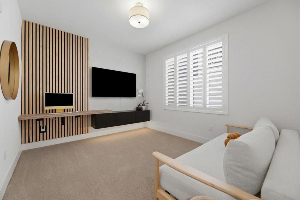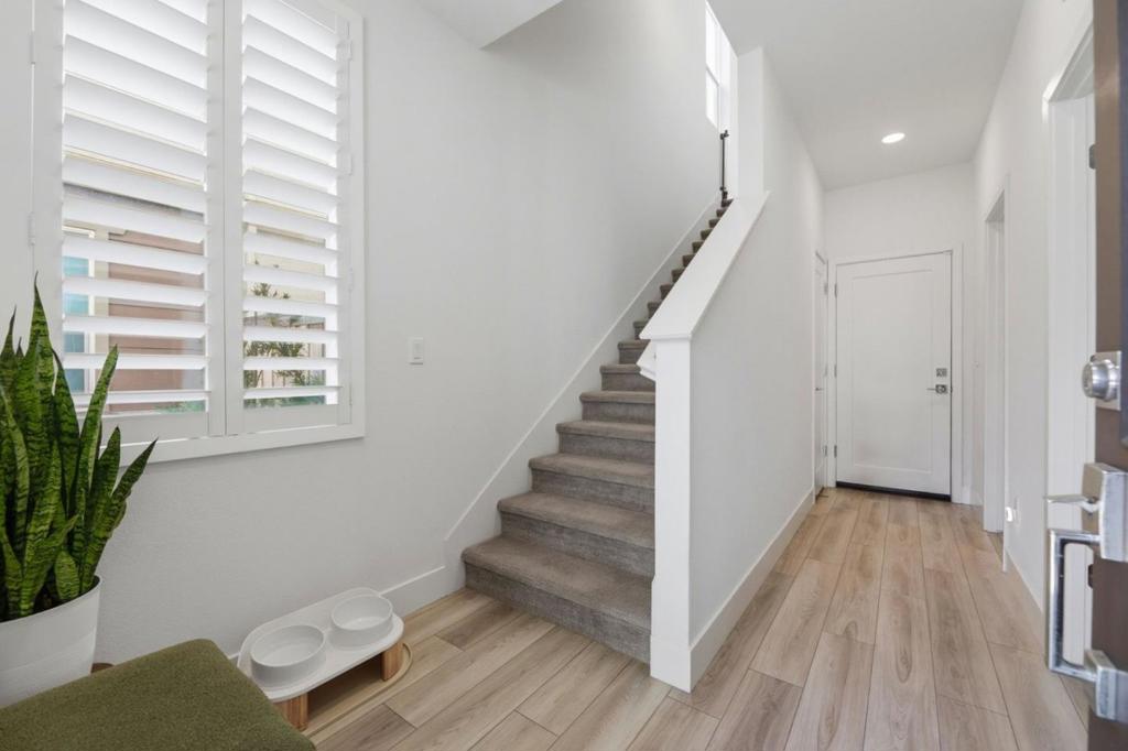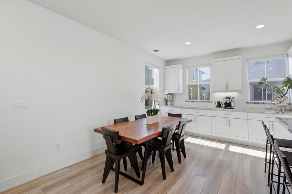 Modern Luxury Meets Effortless Living! Welcome to this stunning 3-year-new northeast-facing home featuring 3 bedrooms, 3.5 bathrooms, and fully paid solar for energy-efficient living. Thoughtfully designed with elegant finishes and an open, functional layout, this home combines modern comfort with timeless style. The first-floor guest or office suite offers flexibility for visitors or remote work. Upstairs, the chefs kitchen showcases a quartz island, upgraded stainless steel appliances, and ample storage, seamlessly connecting to the open living and dining areas that flow to a covered patio, perfect for indoor-outdoor entertaining. Upgrades include luxury vinyl plank flooring, custom wooden shutters, automatic window treatments, and a finished garage with epoxy floors and built-in cabinets. The low-maintenance backyard features turf and a built-in deck for relaxing or hosting. Located in the desirable Bridgeway community with a clubhouse, pool, dog park, and playground. Conveniently close to Don Edwards Wildlife Refuge, Meta, Tesla, Dumbarton Bridge, and I-880. Some furniture may be included for a move-in-ready experience!