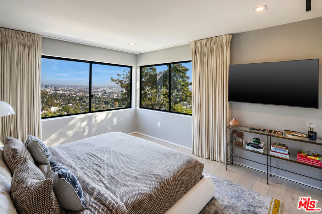 Set at the end of a quiet road just above the iconic Chateau Marmont, this private gated estate commands one of Los Angeles' most spellbinding panoramas -- unobstructed views that sweep from Downtown's skyline to the shimmering expanse of the Pacific. Spanning more than an acre, the residence is a study in light, proportion, and indooroutdoor living, composed with a warmth and clarity that elevate every moment.A double-height living room anchors the main level, framed by floor-to-ceiling glass and Fleetwood pocket doors that disappear to reveal the city below. The open floor plan unfolds through sun-drenched interiors, thoughtfully curated to maximize the incredible views at every corner. The beautifully appointed chef's kitchen is both functional and inviting, with top-tier appliances, sleek marble surfaces, a cozy dining nook, and lounge area - all entirely open to the outdoors. Flowing effortlessly into the expansive backyard, the outdoor spaces feature a zero-edge pool, outdoor grill, serene seating terraces, and an outdoor dining area set against far-reaching vistas. A private trail leads to a covered Gazebo Rotunda outfitted with state-of-the-art gym equipment, while lush mature landscaping and a generous grassy lawn complete the grounds.On the second level, a large sitting room overlooks the dramatic double-height living room below, capturing breathtaking vistas through soaring floor-to-ceiling windows, while bedrooms deliver comfort and refinement. The superior primary suite is more like a sanctuary, complete with sitting room and fireplace, skyline-view balcony, dual walk-in closets, and a spa-like bath with dual rainfall walk-in shower. An upper club level introduces yet another dimension of luxury with a custom bar and media room that open to a vast sky-lounge terrace, ideal for entertaining against the backdrop of city lights.The residence also features a dedicated indoor sauna and home office.Secluded, yet moments from the energy of the Sunset Strip, this estate blends architectural brilliance, bespoke design, and unparalleled views into a residence that feels both expansive and intimate. An extraordinary offering in the Hollywood Hills.