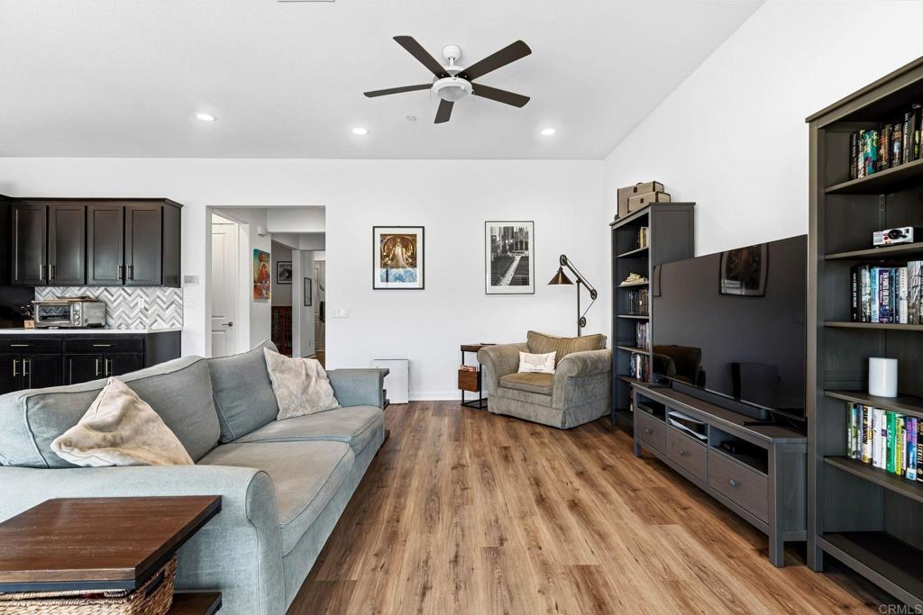 Stunning single-story 2 bedroom, 2 bathroom + Den home with sweeping mountain cap views in the premier 55+ community of Altis at Terramor and close proximity to the clubhouse and all other amenities. The "Altis" homes have access to the Terrace Club and amenities, as others do not, regardless of age. This home was built in 2022, original owners selected over $86,000 in upgrades, including an enhanced gourmet kitchen, remote-powered blinds, and bathroom upgrades. The open-concept great room features vinyl plank flooring throughout, recessed lighting, and a 12-foot sliding door opening to a covered California room for seamless indoor-outdoor living. The chef’s kitchen offers quartz countertops, a large center island with seating, Kona cabinetry, wine fridge, and walk-in pantry. Additional highlights include fully paid solar panels, a dedicated laundry room, and thoughtful upgrades throughout. Residents enjoy exclusive access to The Terrace Club with resort-style amenities including indoor and outdoor pools, spa, fitness center, sauna, pickleball and tennis courts, bocce ball, clubhouse, social events, and scenic walking trails. Conveniently located near Tom’s Farms, Glen Ivy Hot Springs, Dos Lagos, and Corona Crossings. Mountain views, resort amenities, and elevated 55+ living—this home delivers it all.