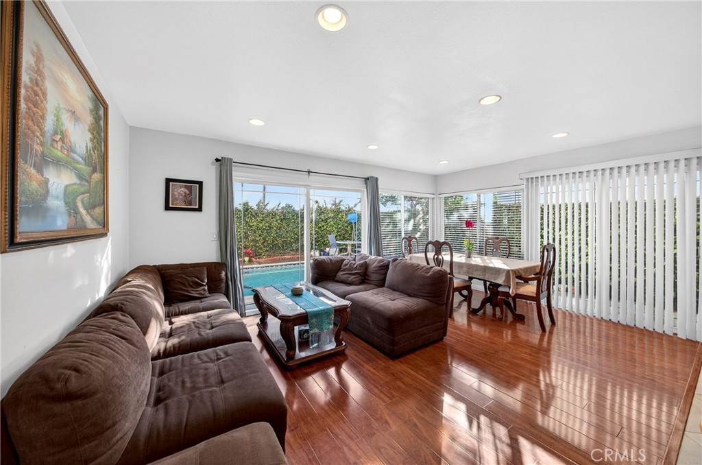 Welcome to your dream home 13626 Aclare Ln. Cerritos. Swimming Pool & Cul-De-Sac Home near Gonsalves Elementary School. The home features five(5) bedrooms and three(3) bathrooms. Three(3) bedrooms and Two(2) baths on the first floor. Ensuring ample space for your family and guests, include one full bedroom & bath on the up-stair with a walk-in closet. Living Room with Fireplace. Spacious and remodeled gourmet Kitchen with Island, granite countertops, recessed lighting, plenty of cabinets. The property has a huge loft, perfect for an additional office or entertainment area like pool table or table tennis. 2 Car attached Garage with direct access. Conveniently located near shopping centers, parks, entertainments, and major freeways. *Previous seller converted 2bedroom to 1 huge bedroom on the 2nd floor - This room can be a master bedroom.