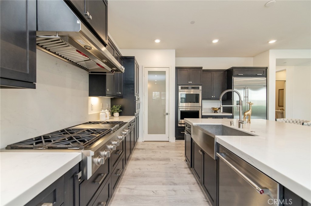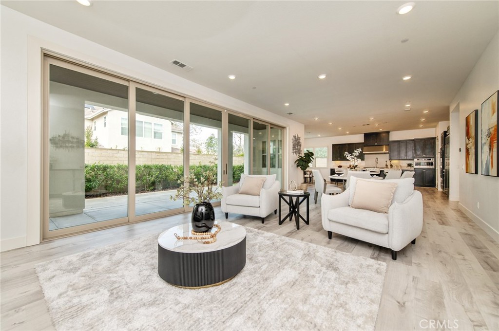 Discover the Epitome of Modern Luxury in Great Park! Nestled on a premium corner lot within the prestigious Great Park Neighborhoods, this stunning modern residence offers unparalleled privacy. Boasting 4 bedrooms and 4.5 bathrooms, this home is a masterpiece of contemporary design and effortless elegance. The main level welcomes you with high-end SPC wood flooring and a thoughtfully designed guest ensuite, providing comfort and privacy for visitors or multi-generational living. The heart of the home is the expansive Great Room, where the living, dining, and kitchen areas flow seamlessly together. This light-filled open layout is anchored by a gourmet chef’s kitchen featuring professional-grade Monogram appliances, a massive center island, and a walk-in pantry for organization. Experience true indoor-outdoor living as six-panel multi-slide glass doors disappear to reveal a tranquil California Room. The low-maintenance backyard, featuring premium synthetic turf, serves as a private sanctuary for relaxation or sophisticated entertaining. Upstairs, the square-shaped loft offers a versatile space , with direct access to a charming balcony. The lavish Primary Suite is a retreat of its own, featuring dual vanities, a deep soaking tub, a walk-in shower, and a spacious walk-in closet. Two additional upstairs bedrooms are both ensuites, ensuring every family member enjoys their own private bath. Prime Location: Steps away from the Cadence Park School (K-8) and the state-of-the-art Portola High School. Enjoy Great Park amenities including resort-style pools, sports complexes, and scenic trails. This is more than a house—it’s your dream lifestyle. A must-see!