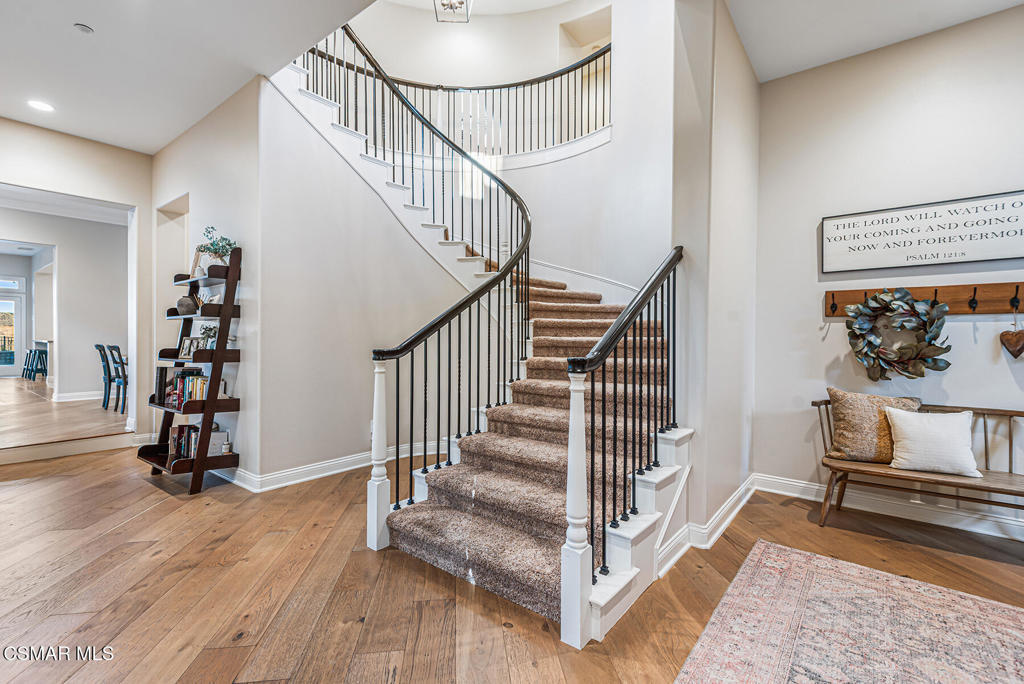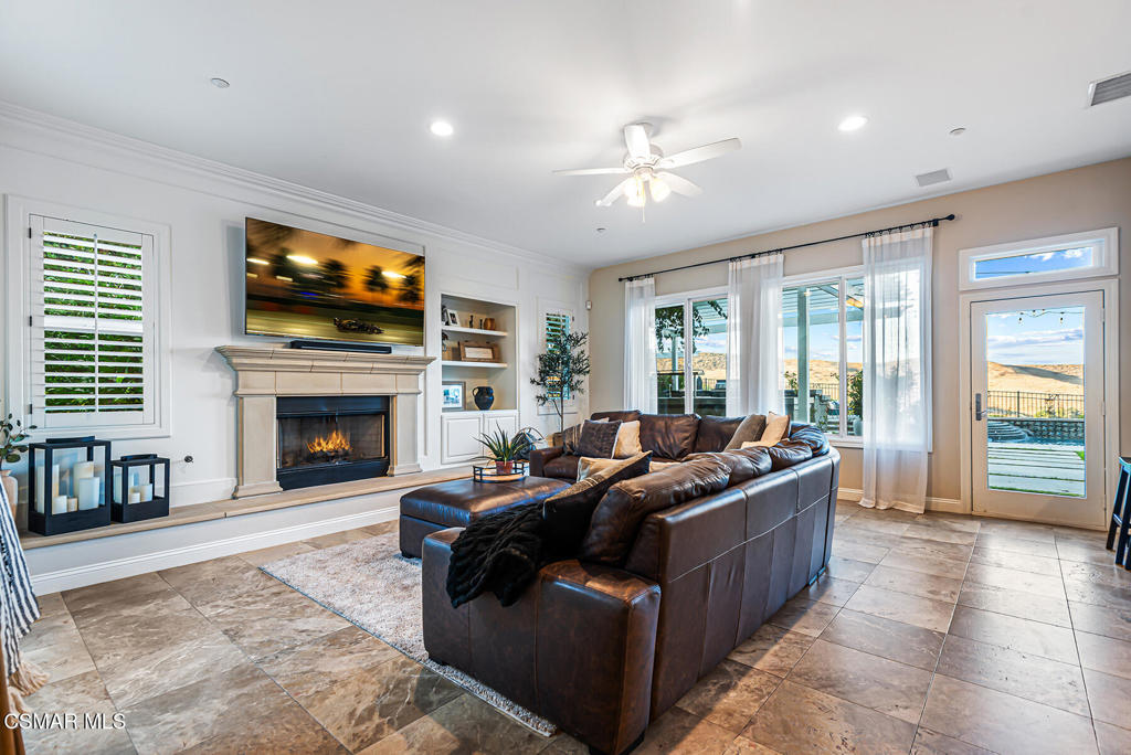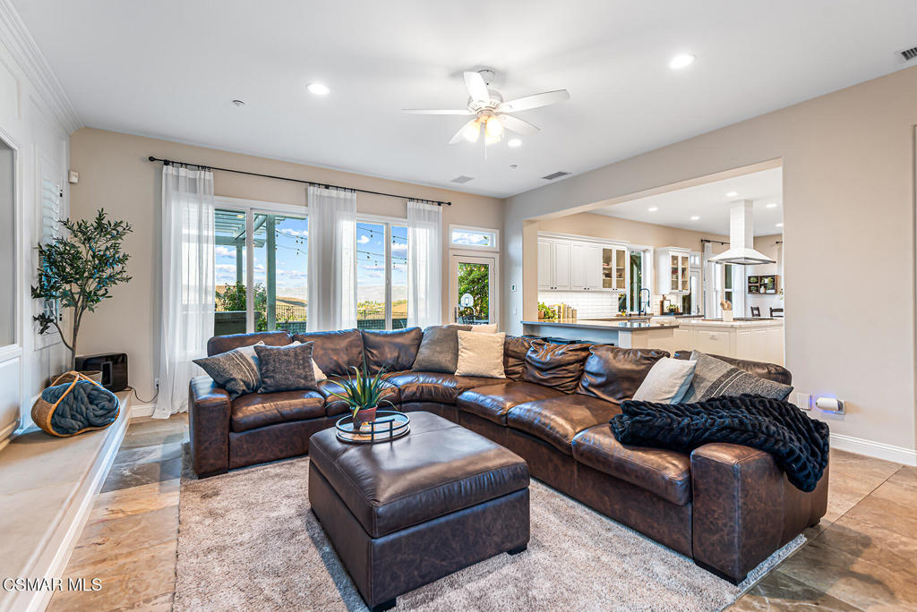 The absolute trophy estate in the exclusive gated community, The Vineyards of Wood Ranch! This sensational former model home has a premier location in one of Simi Valley's most desired gated communities. Boasting panoramic unobstructed views, this beauty has true pride of ownership and stunning details throughout! There are 4 en-suite bedrooms and a convertible den/office (with en-suite bathroom) that can easily be made into a 5th bedroom. Features also include an upstairs loft/play room and a tremendous primary suite with large sitting room, two walk in closets, Juliette balcony and a luxurious bathroom. The upgraded center island kitchen is graced with top of the line appliances and opens seamlessly to the large family room with fireplace. The highly desired floorplan provides 3 en-suite bedrooms up and one down with the convertible den (possible 5th BR) also located on the main level. The resort quality backyard is second to none! There is a custom pebble tech pool and spa, multiple slatted wood covered patios, next level chefs outdoor kitchen, basketball court, private courtyard with outdoor fireplace and lush manicured lawns all with jaw dropping views and ultimate privacy! Other amenities include a newer expanded custom driveway, FOUR CAR garage, New front landscaping and landscape lighting, new window treatments, Lutron lighting and so much more! A very special offering!