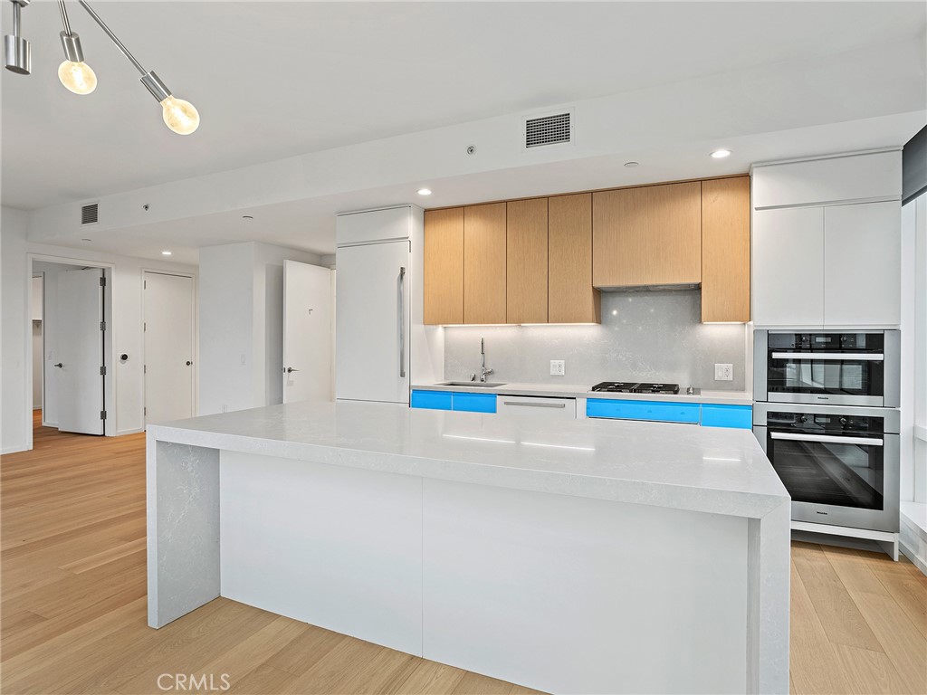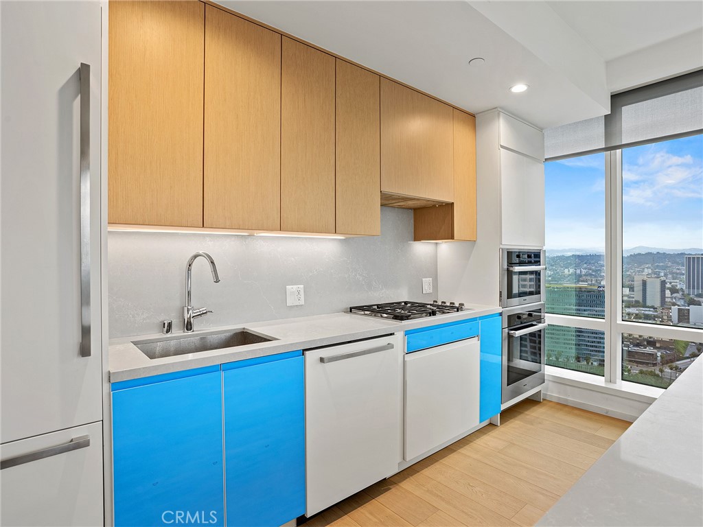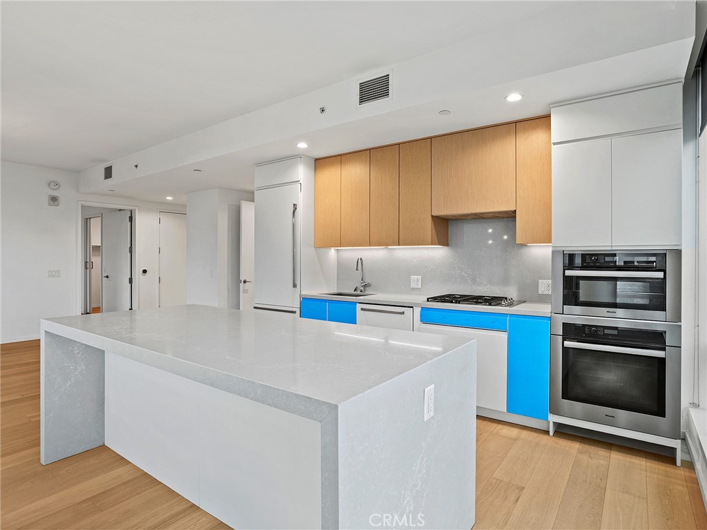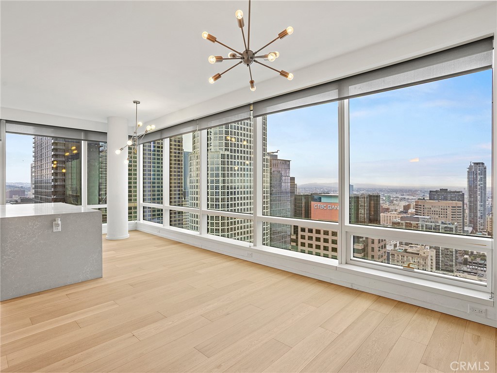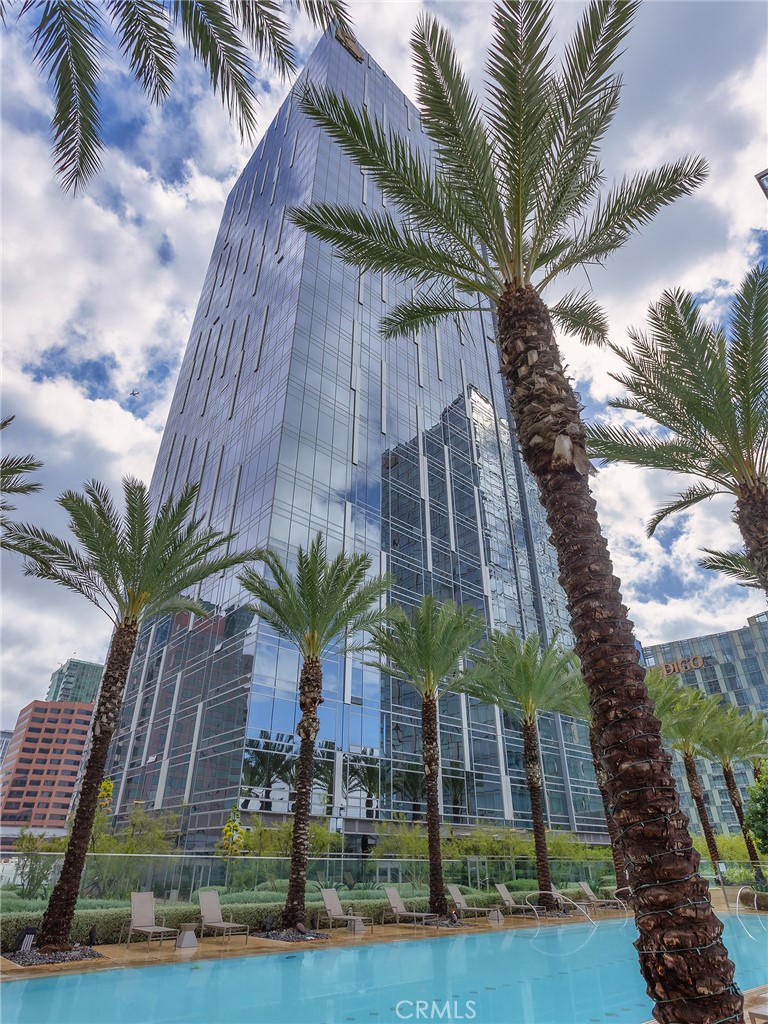 Perched on the 41st floor, this spectacular end-unit residence offers 1,310 square feet of refined living space with 2 bedrooms and 2 bathrooms in a premier luxury high-rise designed by Gensler. A formal entryway welcomes you into a stunning showplace defined by soaring high ceilings and dramatic floor-to-ceiling windows that frame truly breathtaking panoramic views. From sunrise to glittering city nights, enjoy sweeping vistas stretching as far as the LA Harbor, the iconic Hollywood Sign, surrounding mountains, and shimmering city lights. The thoughtfully designed floor plan features a spacious living area that flows seamlessly into a formal dining area, perfect for entertaining and elevated downtown living. The gourmet kitchen is beautifully appointed with a built-in refrigerator, stove, microwave, cooktop, wine refrigerator, expansive center island, and breakfast bar, offering both style and functionality. The spacious primary suite serves as a private retreat, complete with a generous walk-in closet and a well-appointed en-suite bath. A second bedroom and full bath provide comfort and flexibility for guests or a home office. A dedicated laundry area is conveniently located in the hallway. Central heat and air ensure year-round comfort. Experience true resort-style, luxury high-rise living with exceptional amenities including a 24/7 lobby attendant, concierge service, pool, spa, fitness center, putting green, and more. Ideally situated just two blocks from L.A. Live and Crypto.com Arena, you’ll enjoy immediate access to world-class entertainment, along with an abundance of renowned restaurants and vibrant shops right outside your door. This is downtown living at its finest, elevated, sophisticated, and unforgettable.