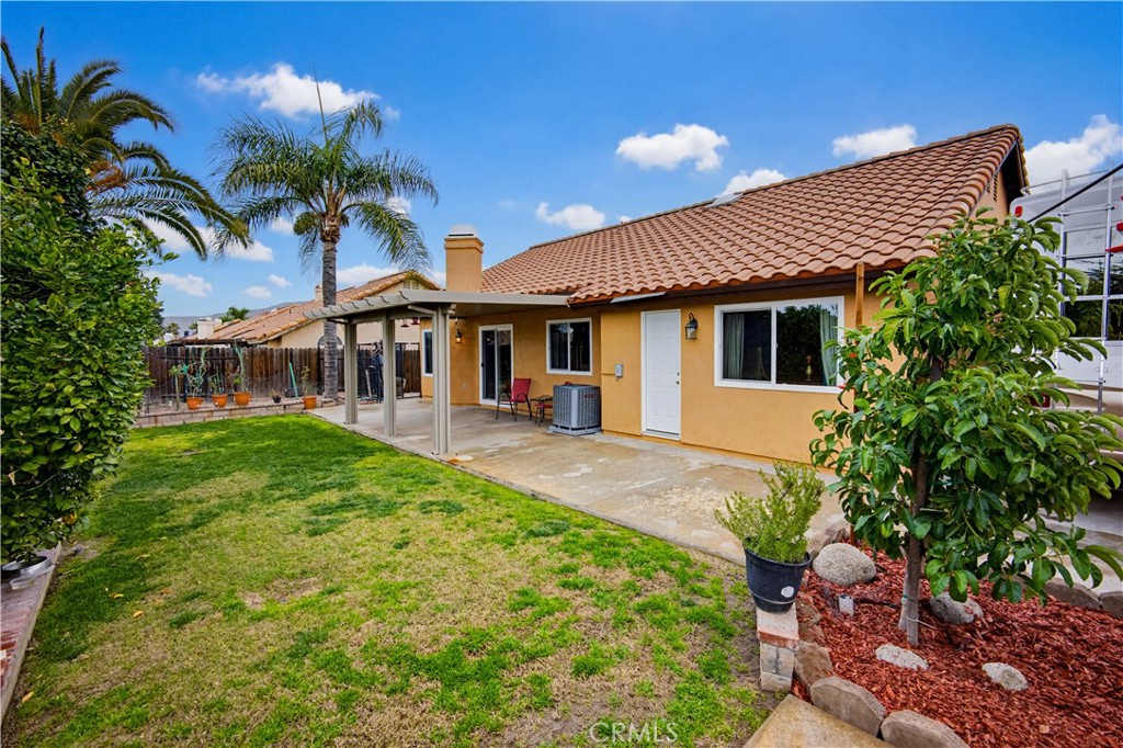 Welcome to this beautifully upgraded, turnkey single-story home in desirable San Jacinto, offering 3 bedrooms, 2 bathrooms, and situated on a generous 6,534 sq ft lot. This home reflects true pride of ownership, with extensive upgrades completed over the years — many as recently as 2025 and 2026. From the moment you arrive, you’ll appreciate the inviting curb appeal featuring a warm terracotta-toned Spanish-style tile roof (replaced in 2018), fresh exterior paint completed in December 2025, a manicured front lawn, and a wide driveway leading to a two-car garage. The extended driveway also provides valuable RV parking access, adding flexibility and convenience. Inside, the thoughtfully designed layout offers comfortable, versatile living spaces filled with natural light through double pane windows installed in 2020, including the dining room sliding door. The kitchen was fully upgraded at the beginning of 2026 and features granite countertops, a new sink and faucet, new dishwasher, new garbage disposal, new kitchen exhaust fan, and added recessed lighting. It opens seamlessly to the living and dining areas, where a dining room ceiling fan/light fixture enhances comfort and style. Major system improvements include an A/C unit and furnace replaced in 2018, a water heater installed in 2022, and a water softener added in 2015, offering peace of mind for years to come. Both bathrooms have been tastefully updated, with sink cabinets replaced in 2015, faucets updated in 2020, and plumbing fixtures replaced in 2026. The hallway bathroom received new lighting fixtures in 2026, while the primary bathroom lighting was upgraded in 2015, along with additional toilet room lighting installed in 2026. The spacious primary suite also includes a ceiling fan/light fixture installed in 2025 and offers direct backyard access, creating a relaxing retreat. All bedroom closet doors were newly installed in January 2026, adding a fresh, modern touch throughout. Step outside to enjoy the covered patio, perfect for outdoor dining and entertaining. The backyard features a grassy lawn, established landscaping, and a mature fruit tree, offering space to relax or personalize. With a roof replacement in 2018 and numerous recent upgrades throughout, this move-in ready home stands out for its condition, functionality, and long-term value — an exceptional opportunity to own a beautifully maintained home in San Jacinto.
