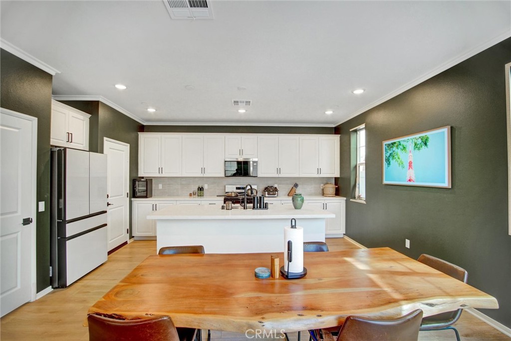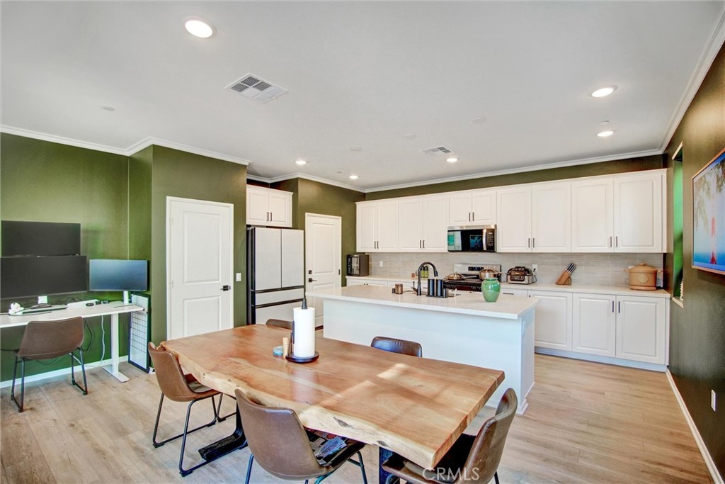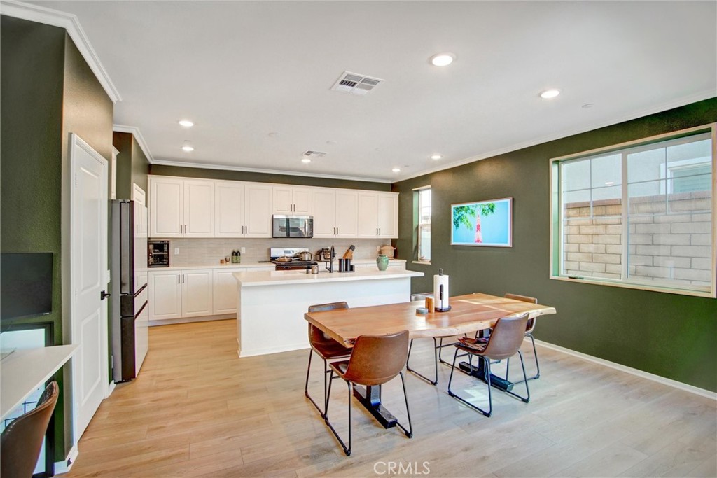 Pristine 2025 Construction with PAID-OFF SOLAR! Skip the builder wait with this turn-key, 1,889 sqft detached residence in the Dwell community of New Haven. Lived in for only a few months, this modern home features 3 bedrooms, 3 bathrooms, and a versatile upstairs loft. The open-concept main floor centers around a gourmet kitchen with premium countertops, premium cabinetry, and a large social island. The primary suite offers a private retreat with a spacious walk-in closet and a contemporary en-suite bathroom featuring a large walk-in shower. Significant value includes a fully paid-off solar system (no lease) and smart home technology. Enjoy a private rear yard with brand new landscaping and access to premier New Haven amenities: resort-style pools, Sundance Park, "Paws Park," and the vibrant Rodeo X Public Market. Ideally located near the 10, 15, and 60 freeways for an easy commute.