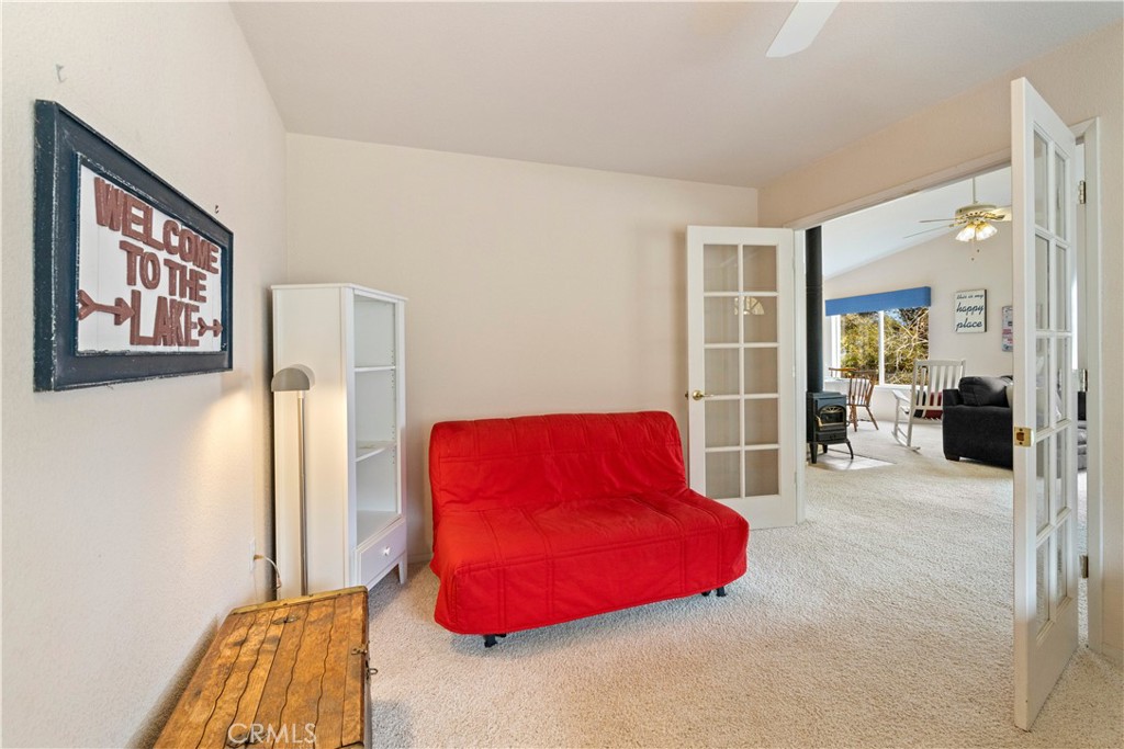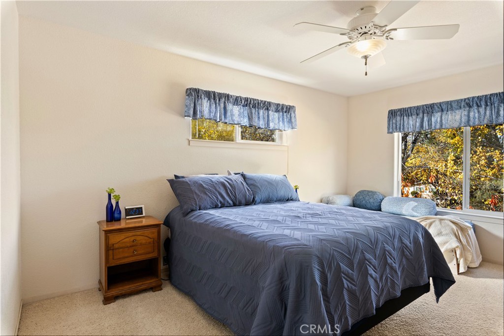 Charming and easy to maintain, this single-level home is located in the sought-after Riviera Heights HOA, where residents enjoy access to exceptional amenities including a private lakefront area with boat ramp, BBQ area, and dock, along with a clubhouse with banquet facilities and a pool. The three-bedroom, two-bath home offers a practical open floor plan, a level driveway, a two-car garage, and an additional off-street parking pad. The primary bedroom features filtered lake views and a private en-suite bath. One guest bedroom also enjoys filtered views of the lake and surrounding mountains, while the second guest room, located off the living room, provides flexible space that could serve as a home office, studio, or daybed area. A gas fireplace adds warmth to the living room, and the dining area opens to a back deck that leads to a fully fenced backyard, creating a comfortable and private space for outdoor enjoyment. Inside laundry room conveniently adjacent to the garage. Additional storage space beneath the home offers convenient room for tools, seasonal items, or recreational gear.