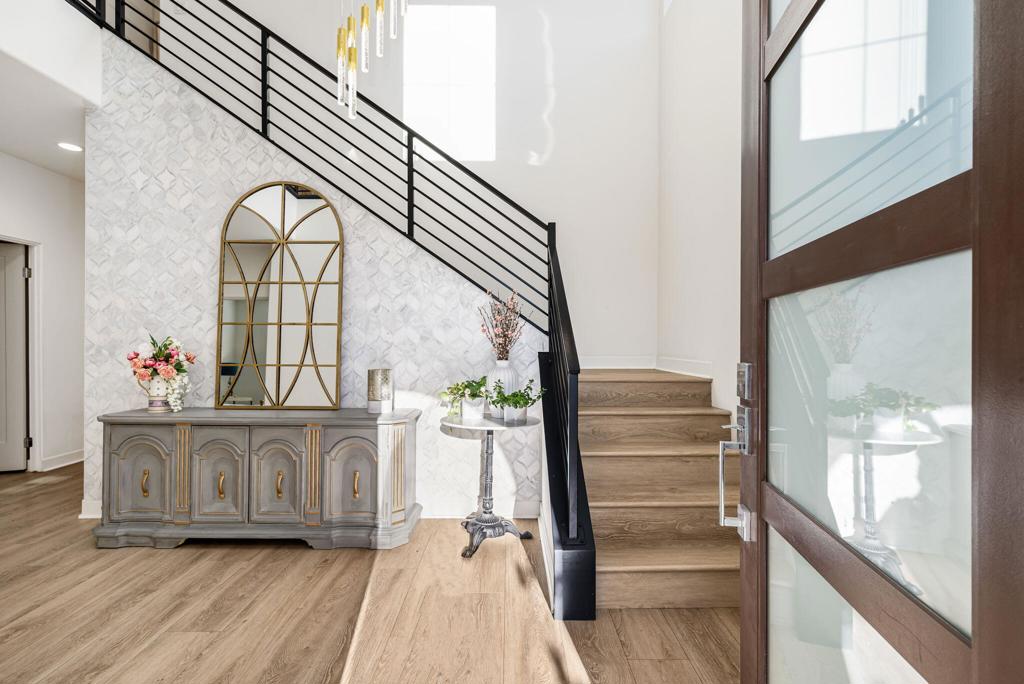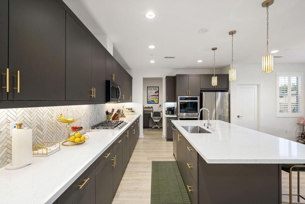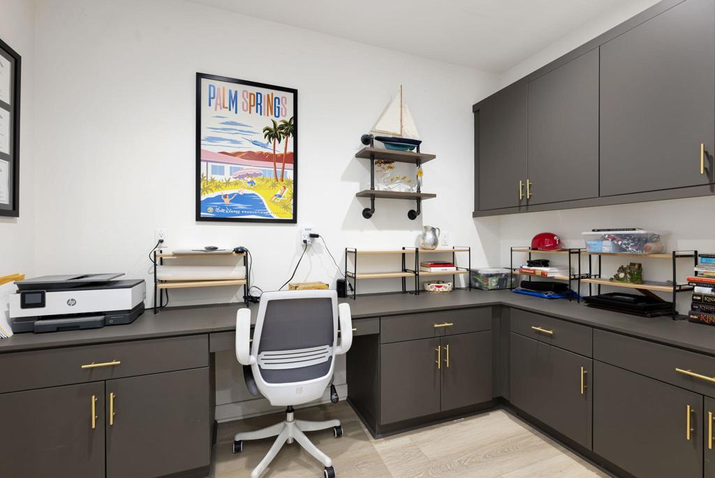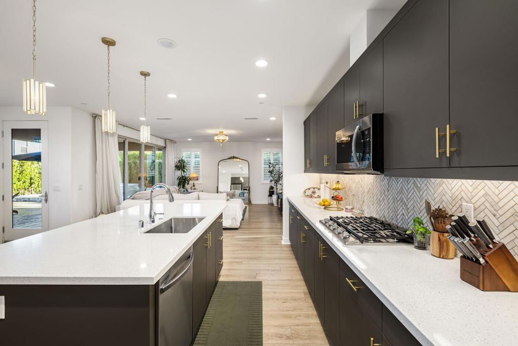 Discover this stunning home within the vibrant University Park community in Palm Desert, where this highly upgraded gem welcomes you with tall ceilings and luxurious LTV flooring. As you step inside, you are greeted by a custom chandelier and marble accented walls. The kitchen features double ovens, a 5-burner stovetop, and stylish upgrades like premium countertops, backsplash, and hardware. Conveniently nearby, an office space flows seamlessly from the kitchen, offering a comfortable and practical spot to work from home.The indoor and outdoor living spaces seamlessly connect through a large sliding glass door at the great room. The backyard is an entertainer's dream with a large saltwater pool and spa perfectly seated facing the mountains. Gather your loved ones with abundant space to unwind, featuring a gas fire pit, fireplace, and covered area for enjoyment. The home is spacious, featuring 4 bedrooms and 3 1/2 baths. The primary bathroom is the ultimate escape with custom details like marble and a separate shower and tub. Additionally, the upstairs space features a large loft that can be used as a media room. Living here, you will enjoy massive savings on electricity costs with owned solar. The new community of University Park comes with a lot of perks, such as The Grove. At The Grove, residents can indulge in resort-style pools, pickleball courts, a cutting-edge fitness center, and a shaded playground, all complemented by an event lawn with stage, fire pit, and barbecue area. Three parks and a bark park offer ample green space for relaxation and play.