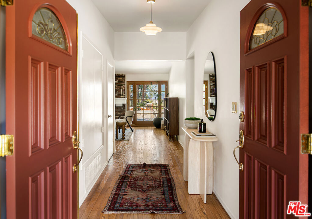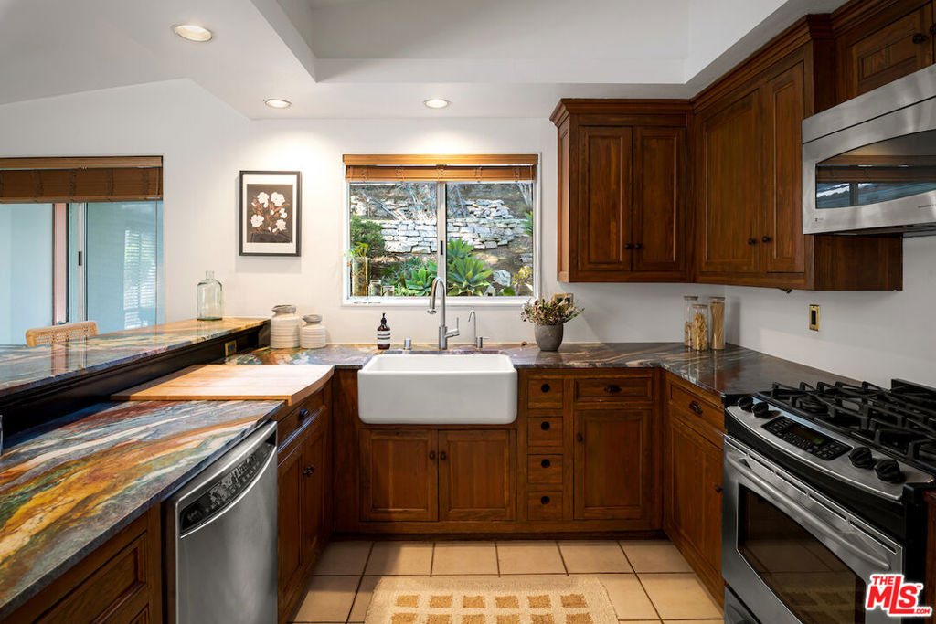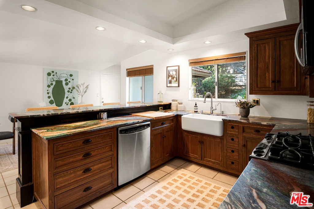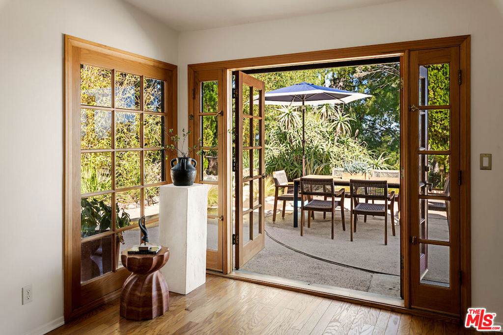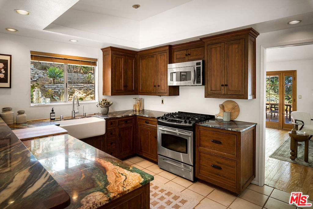 Nestled in a quiet cul-de-sac street in an upscale neighborhood of Woodland Hills, adjacent to Topanga Canyon, this charming single-story ranch offers privacy, space, and sweeping valley views. This beautifully maintained 3-bedroom home features a thoughtful, open layout designed for both everyday living and effortless entertaining. The spacious kitchen with gorgeous Brazilian Quartz countertops offers eating at the island or dining in the attached dining room making entertaining a dream. Head to the living room with French doors that open to an expansive backyard seamlessly blending indoor and outdoor living while showcasing breathtaking panoramic views. The spacious primary suite is a true retreat, complete with French doors leading directly to the serene pool deck, a wall of closets, and an en-suite bath appointed with travertine tile and striking black stone countertops. Two additional light-filled bedrooms share a bright full bathroom. In addition to the main living areas, the partially converted garage provides flexible bonus space plus a separate office ideal for today's work-from-home lifestyle. A detached artist's studio tucked below the pool deck offers even more creative or guest potential. (Bonus areas are not included in the square footage.) Set on a generous lot, the property offers multiple outdoor spaces to enjoy: a side yard with a grill conveniently located off the kitchen, a large driveway with ample room for parking or recreation, and an incredible backyard designed for entertaining. Lounge on the expansive deck, relax by the pool and spa, and take in the stunning valley vistas and mountains. Just minutes to scenic hiking trails, Topanga Beach, Calabasas Commons and Westfield Topanga Mall. This is California living at its finest. Plus, great schools in the area! Don't miss your chance to see this special home!