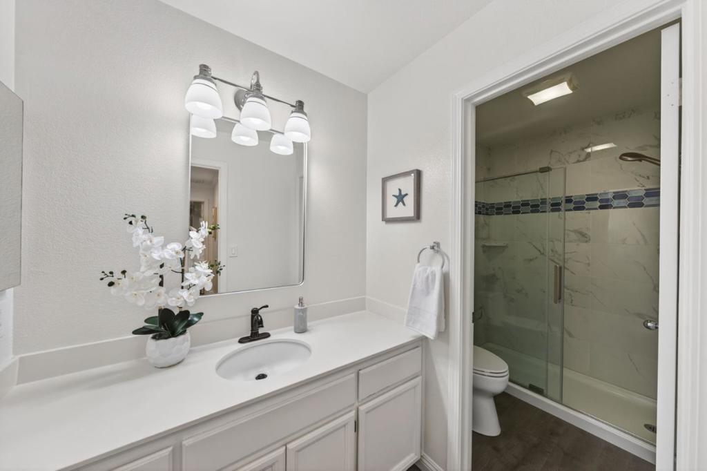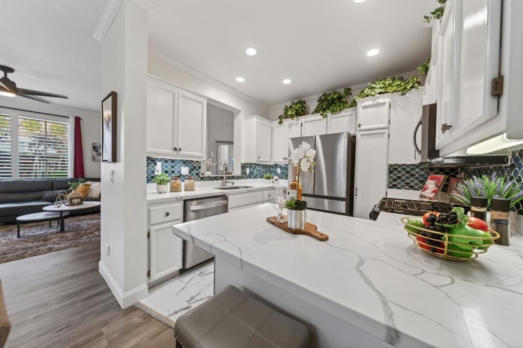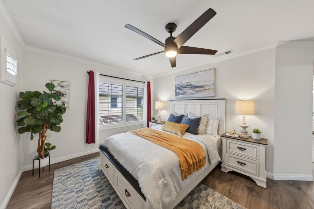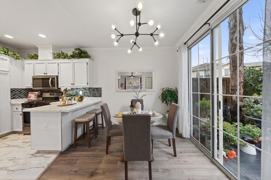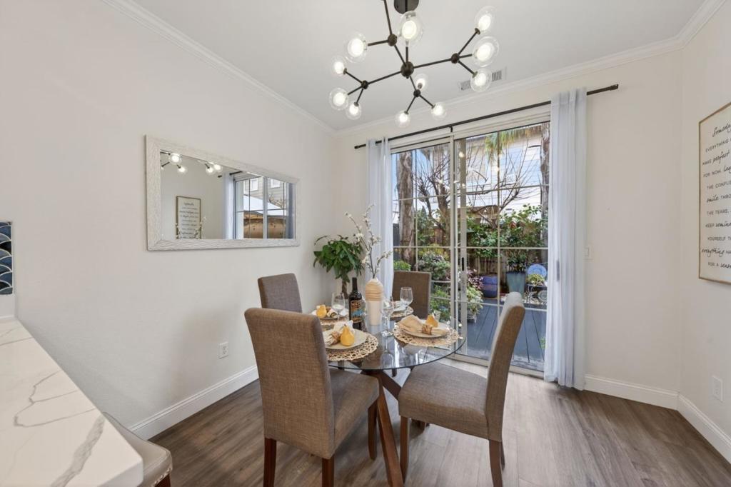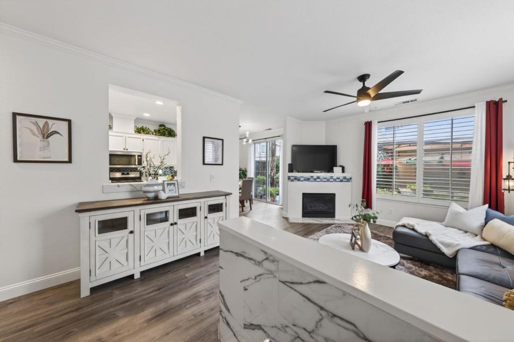 Beautifully remodeled four bedroom townhouse in the highly desirable Amber Grove community. This rare and spacious floor plan offers an open-concept layout filled with abundant natural light and thoughtfully curated high-end finishes throughout. Gourmet kitchen showcases quartz countertops, stainless steel appliances with a gas range, ample cabinetry, and recessed lighting, perfectly designed for both everyday living and entertaining. The expansive living and dining area features soaring ceilings and a cozy fireplace, creating a warm and inviting atmosphere. The primary suite serves as a private retreat with a walk-in closet and a spa-inspired bathroom. Additional highlights include remodeled bathrooms, ground floor bedroom, crown molding, double-pane windows, in-unit laundry, a private patio ideal for outdoor gatherings, and an attached two car garage. Residents enjoy access to the community pool and spa. Ideally located near VTA and Highways 87, 85, and 101 for convenient Silicon Valley commuting. Just a short stroll to Waterford Park and minutes from shopping, dining, and grocery stores. A rare opportunity to own one of the larger units in the community.. this is not to be missed.