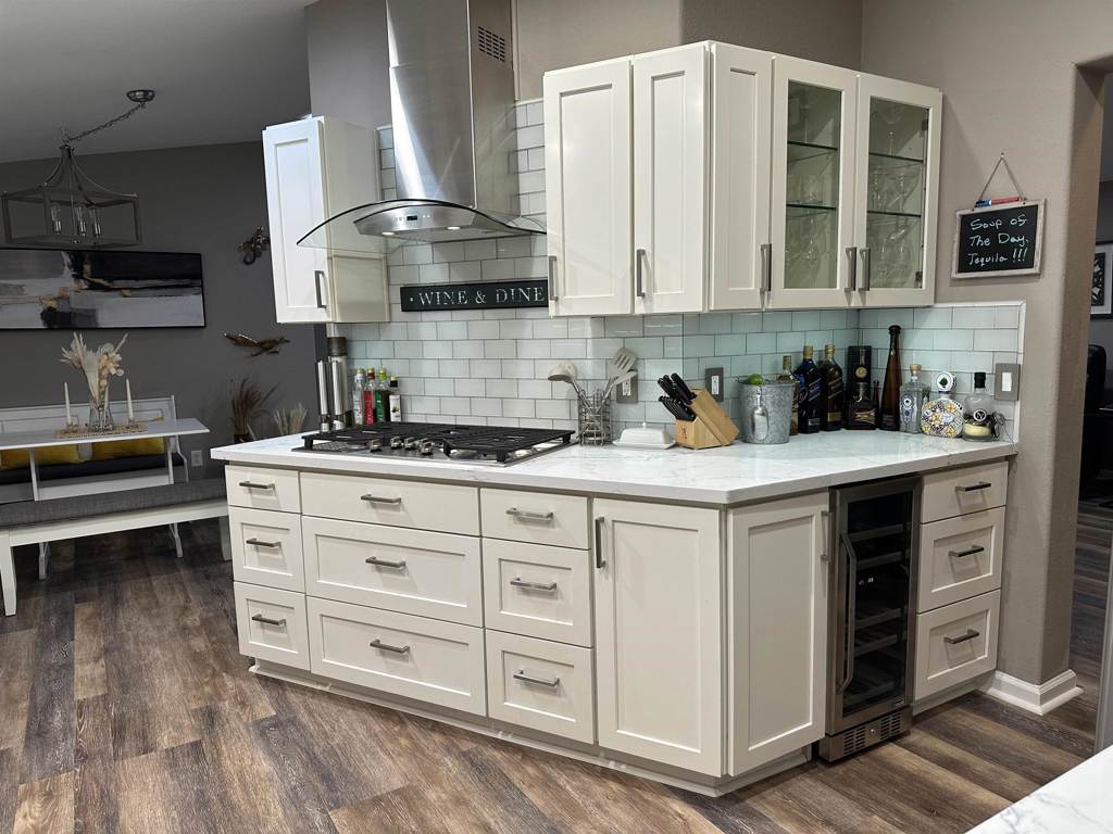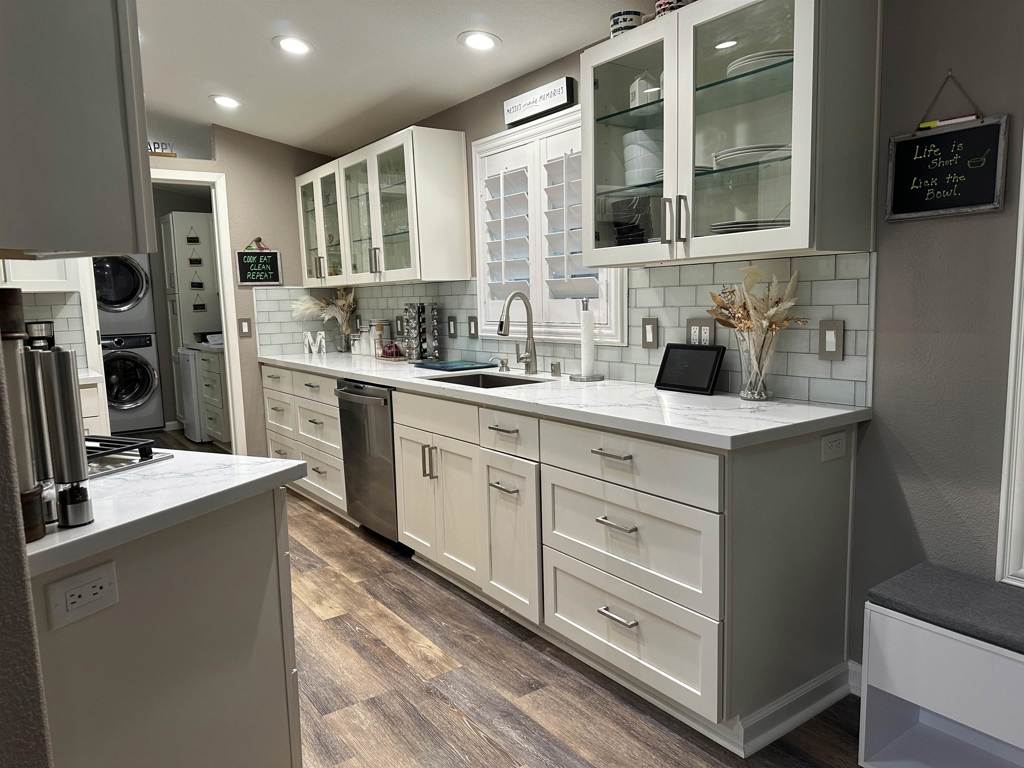 You must see this Luxurious 2010, 3 bedroom, 2 bath Manufactured home in New England Village, a Senior Community. It has much to offer such as, dual pane windows w/ plantation shutters, LED lights and 4 ceiling tubes that flood this beauty of a home with light. The recently remodeled custom kitchen is amazing and features, wine fridge, GE Stainless appliances, 5 burner built in stovetop. built in microwave and wall oven. Refrigerator stays. Large Laundry room w/ lots of storage, built in freezer, washer and dryer stay. Central heat and newer A/C. Clubhouse has organized events, pool, spa and more! Park requires that one buyer be over 55, all others over 18. Fireplaces: GAS,LIV