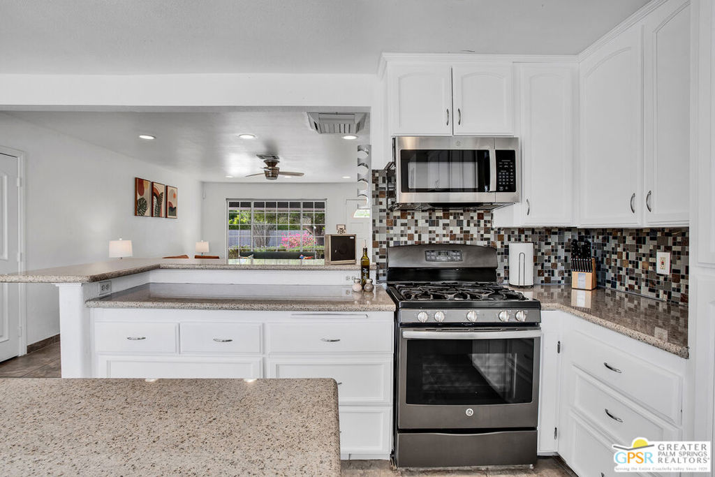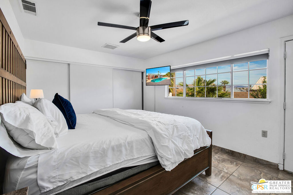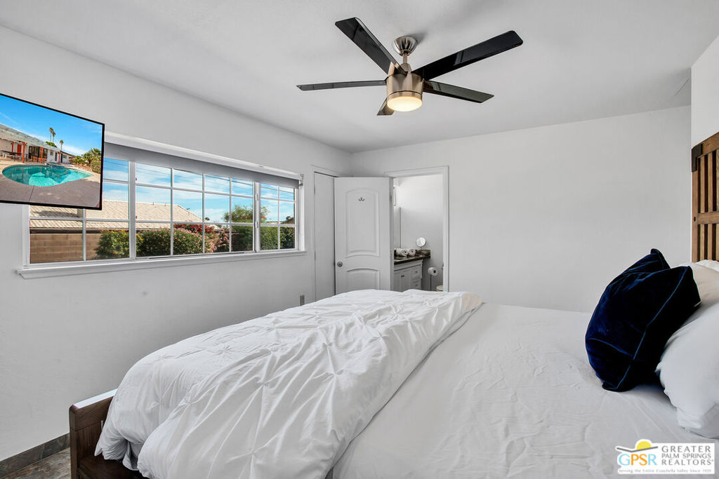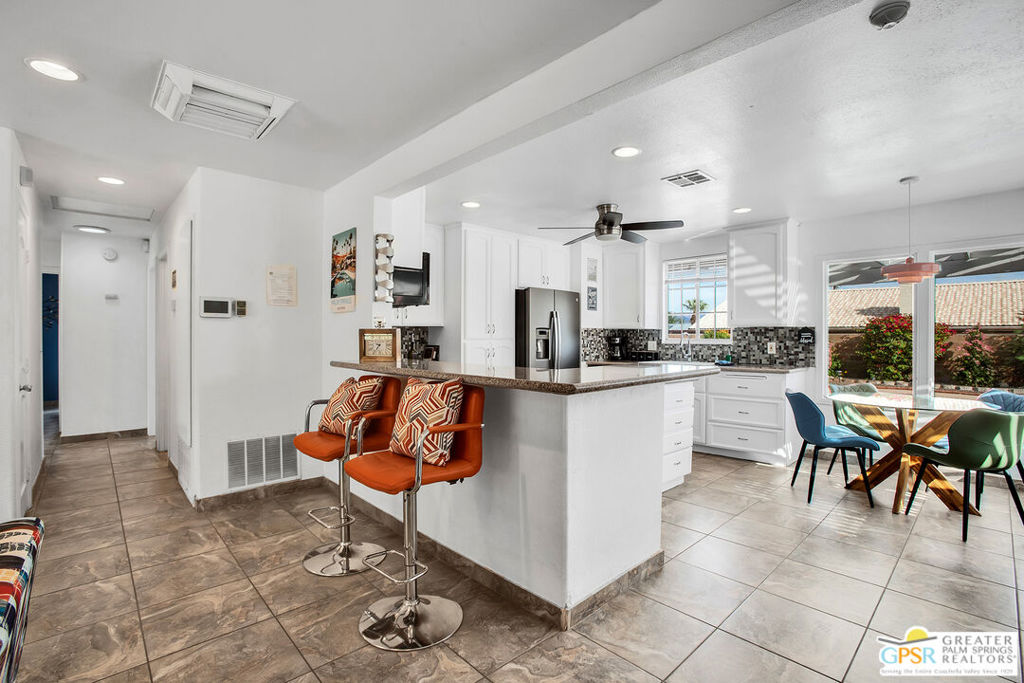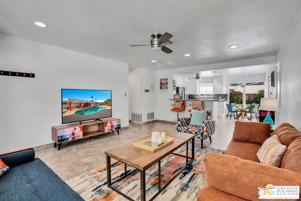 Located a short drive from all the restaurants and nightlife in Downtown Palm Springs, this 4-bedroom, 2-bathroom home offers a mix of modern comfort and outdoor beauty. This charming home offers an open concept living area with plenty of space to host family and friends. Dual pane windows offer an abundance of natural light in the home and the updated kitchen provides ample storage and counter space to entertain large groups. Both bathrooms have been updated with quartz countertops, tile shower and tub enclosures, and contemporary fixtures. The backyard is an entertainer's paradise with a pool, spa, and a large yard for outdoor activities. An attached two-car garage makes parking and storage convenient and secure, and RV parking eliminates the need to rent additional space for a motor home. With its stunning views of the mountains and a blend of modern living and natural surroundings, this property is ideal for those seeking a serene escape, a family residence, or a comfortable home with all the amenities. Don't let this one get away. Contact me today for your own private showing.