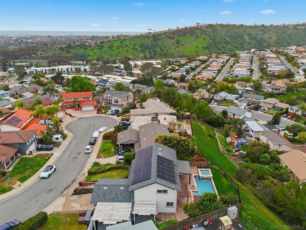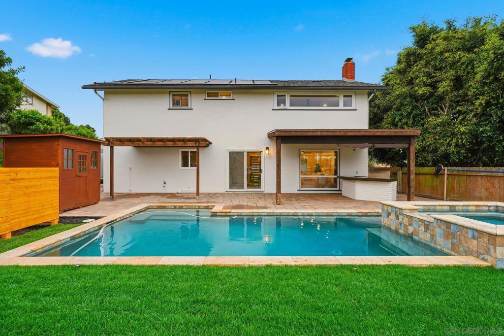 Heart-stopping brand-new luxury remodel in prestigious Bay Ho with sparkling pool and paid-for solar! Nestled on a peak of the hill, enjoy multi-directional views of bay, ocean, city lights, neighborhood, & Mt. Soledad! You'll love the sun-filled open floorplan, spacious kitchen, breakfast nook, large living room with gas FPL. Resort-style backyard with sparkling pool, spa, sauna, covered patio, outdoor BBQ/kitchen, & dramatic "drop-off" views! Top finishes include Taj Majal quartzite counters, Slim Oak Shaker, Hera Linen & Alistair Stone porcelain tile, Calistoga "bleached driftwood" LVP flooring. Consider fencing the front yard for more private space. You'll love living in "real" Bay Ho on a quiet culdesac in a highly-desired executive neighborhood.