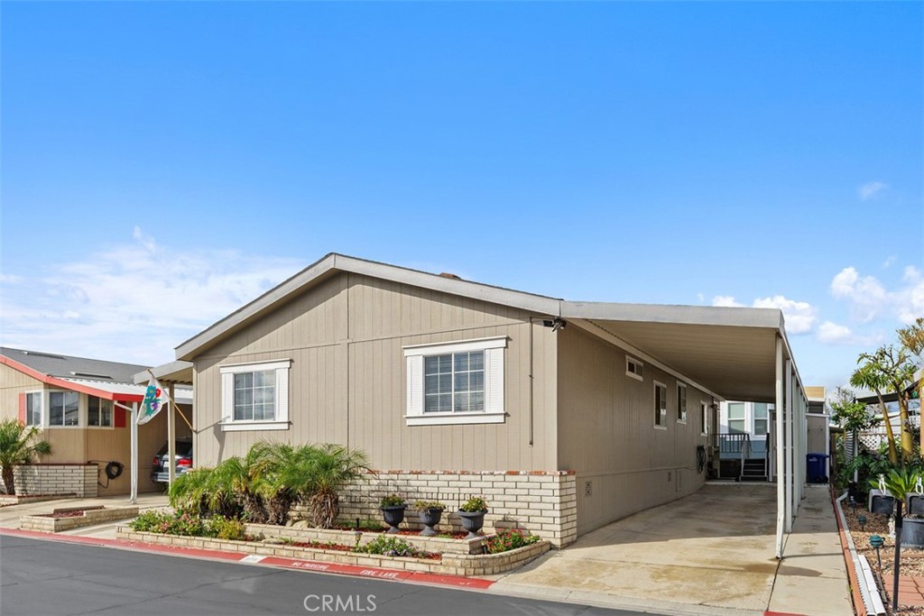 Beautiful 3-bedroom 2 bath mobile home located in the exclusive Rancho Ontario. This home's floorplan boasts the main suite in the back of the home along with the guest bedrooms on the opposite side of the home great for privacy when hosting. The main suite offers a tub, stand-up shower. The home offers an open concept from the dining room to the living room. The driveway can fit up to 3 small vehicles and also offers a big shed. The home offers a nice big open porch. Newly renovated amenities await you offering a heated pool and spa opened year-round, a hall to host any event, our clubhouse offers a billiards room, card table room, a fitness room as well as a gym and a lounge area to just sit and relax. The Park also offers an active area with two pickleball courts, bocce ball and we didn't forget about your fur babies, two dog parks. Don't miss out on the opportunity to call this beauty your home.