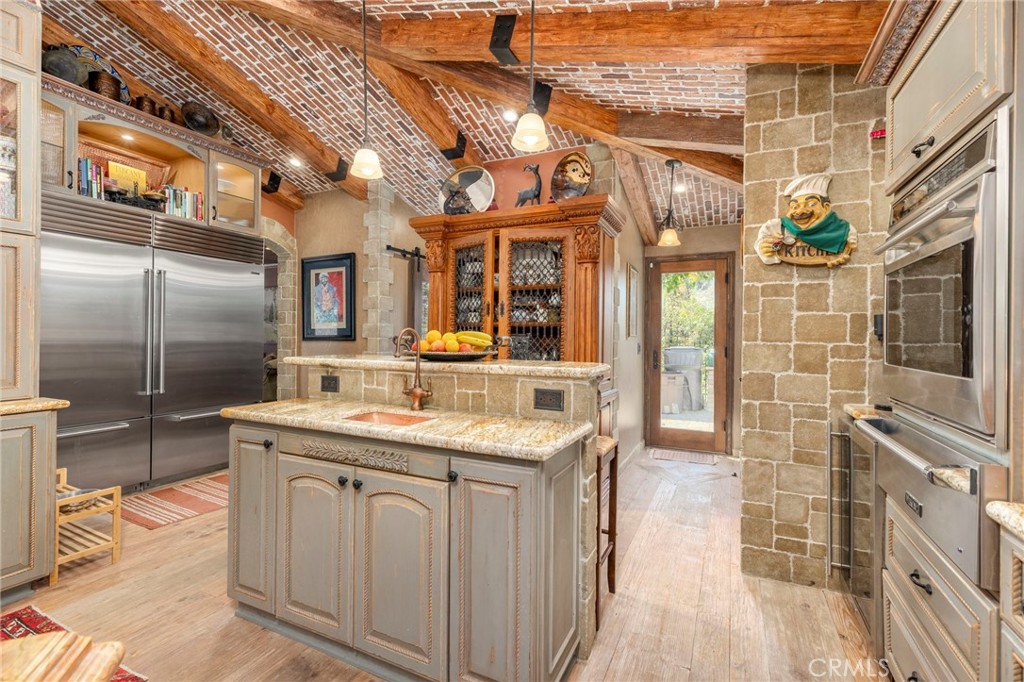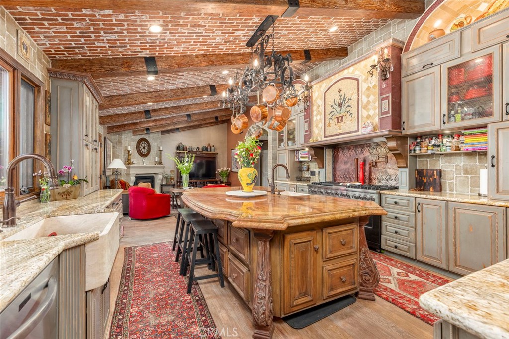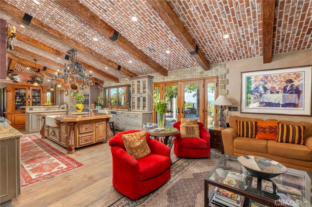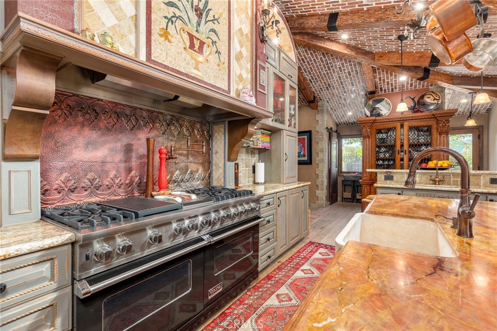 Experience the pinnacle of quiet country living in this one-of-a-kind custom estate, perfectly situated on 2.38 sprawling acres within the prestigious Lake Mathews Estates. Beyond the grand custom entry door and striking copper ceilings, the heart of this 4-bedroom, 2.5-bathroom home is a world-class gourmet kitchen designed for the serious chef. This culinary sanctuary features a massive marble island, a 60-inch Viking range, Sub-Zero refrigerator, three ovens, a warming drawer, and a dedicated wine cooler. Functional luxury defines the space, which includes three kitchen sinks—including artisan travertine—and beautiful seasoned wood flooring that flows throughout the residence. Stately stone columns and custom architectural details transition you seamlessly from the interior to an outdoor oasis built for the ultimate entertainer. Commanding breathtaking, unobstructed views of Lake Mathews, the backyard is anchored by a sparkling pool and spa that overlook the water, complemented by a massive covered terrace and a professional-grade outdoor kitchen equipped with an Eagle BBQ. The home’s exterior is a masterclass in craftsmanship, featuring intricate custom stonework, elegant balusters, and expansive designer hardscape with premium pavers. Beyond the patio, the property transforms into a lush private sanctuary and working orchard, home to 100 olive trees alongside a bounty of apricot, plum, peach, orange, tangerine, almond, and grapefruit trees. Offering the rare freedom of a community with no HOA, this estate includes 40 solar panels (leased) and two large storage sheds. 14260 Grande Vista Ave is a legacy property that perfectly balances high-end opulence with the serenity of a private lake view retreat.