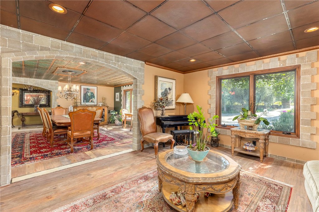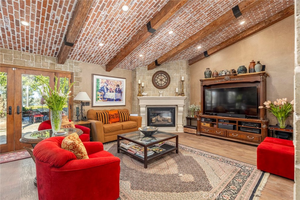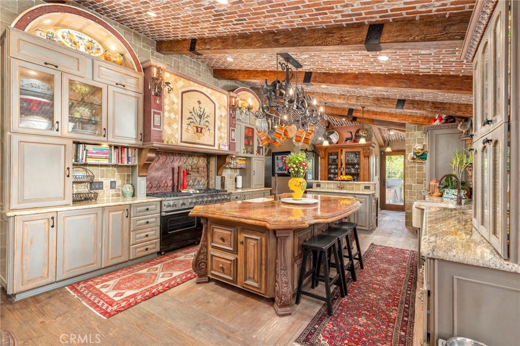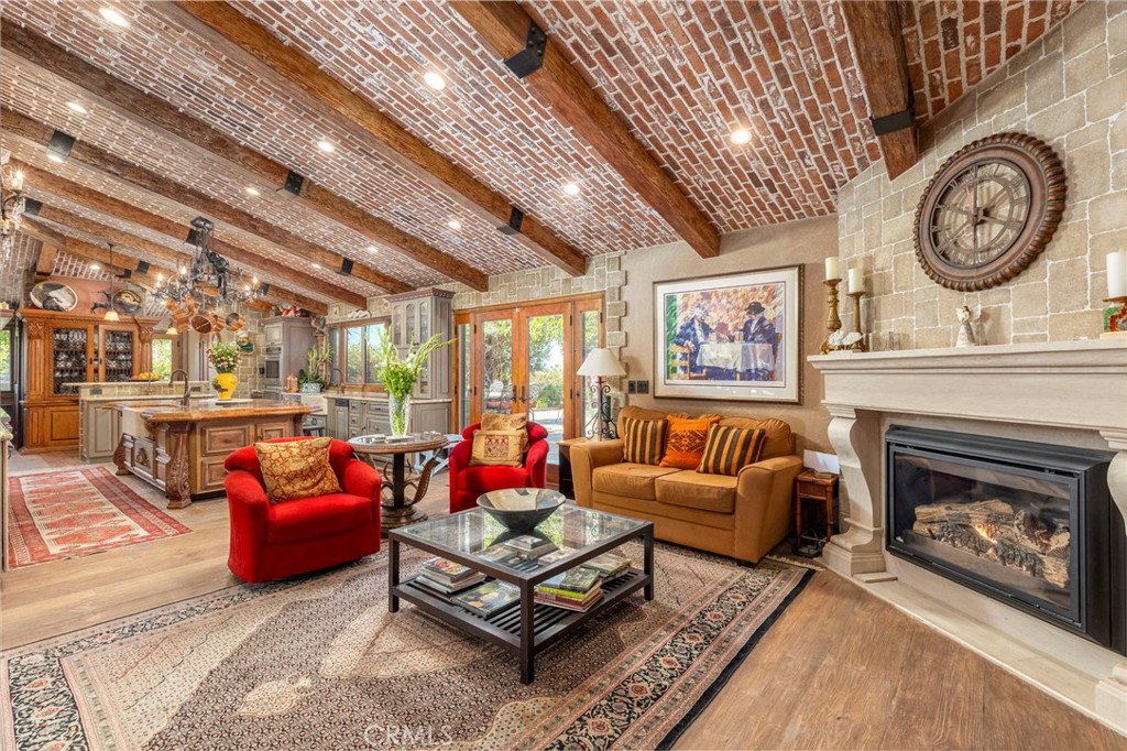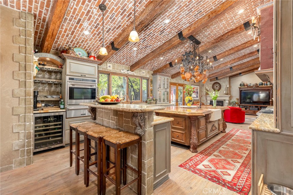 Experience the pinnacle of quiet country living in this one-of-a-kind custom estate, perfectly situated on 2.38 sprawling acres within the prestigious Lake Mathews Estates. Beyond the grand custom entry door and striking copper ceilings, the heart of this 4-bedroom, 2.5-bathroom home is a world-class gourmet kitchen designed for the serious chef. This culinary sanctuary features a massive marble island, a 60-inch Viking range, Sub-Zero refrigerator, three ovens, a warming drawer, and a dedicated wine cooler. Functional luxury defines the space, which includes three kitchen sinks—including artisan travertine—and beautiful seasoned wood flooring that flows throughout the residence. Stately stone columns and custom architectural details transition you seamlessly from the interior to an outdoor oasis built for the ultimate entertainer. Commanding breathtaking, unobstructed views of Lake Mathews, the backyard is anchored by a sparkling pool and spa that overlook the water, complemented by a massive covered terrace and a professional-grade outdoor kitchen equipped with an Eagle BBQ. The home’s exterior is a masterclass in craftsmanship, featuring intricate custom stonework, elegant balusters, and expansive designer hardscape with premium pavers. Beyond the patio, the property transforms into a lush private sanctuary and working orchard, home to 100 olive trees alongside a bounty of apricot, plum, peach, orange, tangerine, almond, and grapefruit trees. Offering the rare freedom of a community with no HOA, this estate includes 40 solar panels (leased) and two large storage sheds. 14260 Grande Vista Ave is a legacy property that perfectly balances high-end opulence with the serenity of a private lake view retreat.