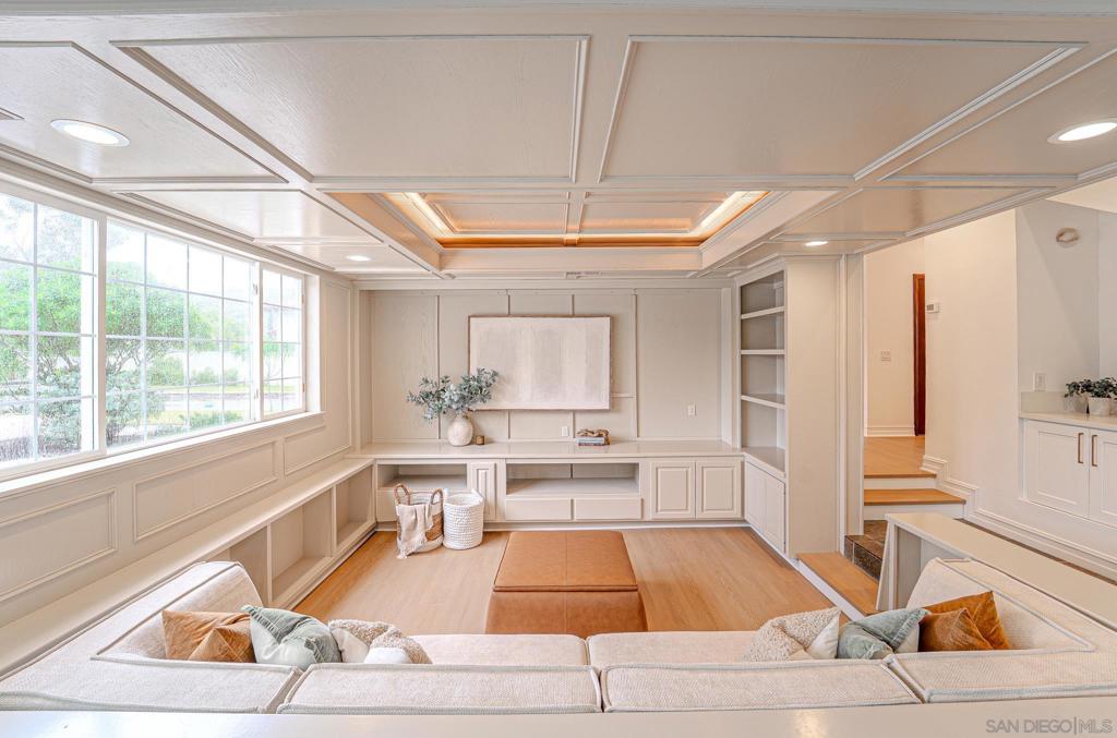 Spectacularly remodeled Poway residence set on an expansive 1.16-acre lot, ideally positioned alongside a picturesque creek and showcasing lush valley and mountain views. This exceptional property offers the perfect blend of privacy, space, and thoughtful upgrades, complete with solar and a private saltwater pebble tech pool with pool cover plus spa. Multiple outdoor entertaining areas include built-in cooking counters. The highly upgraded interior is defined by stylish luxury vinyl plank flooring, a formal entry, and soaring ceilings that create a bright, inviting atmosphere. Formal living and dining rooms lead into the open-concept kitchen, breakfast area, and oversized family room, designed for both everyday living and entertaining. The stunningly remodeled kitchen is a true centerpiece, featuring custom cabinetry, designer backsplash, pendant lighting, free-floating shelves, an expansive island with seating, a brand-new gas range and oven, Bosch dishwasher, and an impressive walk-in pantry. First floor includes a beautifully remodeled powder room. The spacious primary suite serves as a private retreat, complete with brand-new carpet and a fully remodeled spa-inspired bathroom showcasing new tile, two vanities, updated lighting and fixtures, a walk-in shower, and a standalone soaking tub. A large walk-in closet completes the suite. Three additional bedrooms are generously sized and all en-suite, offering comfort and flexibility for family or guests. Extensive exterior improvements include fresh exterior paint, updated lighting, painted walkways and brick pavers, a new deck, new pool equipment, and more. An extensive upgrade makes this home a true must-see. Ideally located within the highly sought-after Poway Unified School District.