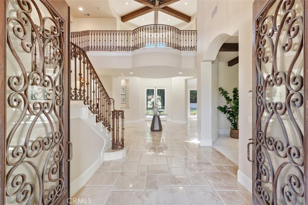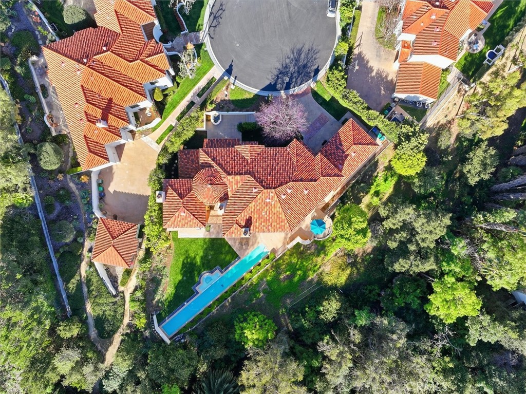 Set on a premier elevated site in an exclusive gated enclave of prestigious properties, 1852 Sharon Lane spans approximately 6,170 square feet on an expansive 36,000 square foot lot, offering a rare blend of scale, privacy, and refined living. This beautifully appointed estate features 5 bedrooms, 4.5 bathrooms, a dedicated home office, and a spacious bonus room, thoughtfully designed for both everyday living and grand entertaining. From the moment you enter, soaring ceilings and striking architectural details create a warm yet impressive welcome, complemented by custom millwork, elegant built-ins, and timeless finishes throughout. Generous living spaces flow seamlessly, offering both formal and relaxed gathering areas filled with natural light.The heart of the home is an expansive open-concept kitchen designed for the culinary enthusiast, complete with premium Thermador and Sub-Zero appliances, abundant prep space with a prep sink, and a walk-in pantry — all opening to inviting family and dining spaces. A built-in wine storage feature adds a touch of sophistication, while the family room showcases a stylish wet bar. A standout feature is the main-level bedroom with a full bathroom, ideal for guests, extended family, or multigenerational living. In total, four of the five bedrooms are ensuite, providing comfort and flexibility for family and visitors alike. Upstairs, the luxurious primary suite serves as a private retreat with serene surroundings, a spa-inspired bathroom, and an enormous walk-in closet designed for both style and organization. Secondary bedrooms are spacious and well-appointed, while the bonus room offers endless possibilities for a media room, playroom, or additional lounge space. Step outside to a truly resort-caliber yard featuring an impressive 25-meter lap pool with adjoining spa, surrounded by a lush, completely private yard with abundant foliage and scenic vistas. Multiple outdoor seating areas create inviting spaces for relaxing, dining, and entertaining, offering a seamless indoor-outdoor lifestyle. Completing the property are 4 garage spaces and a coveted location near scenic trails, including nearby Bent Tree Park and Peters Canyon. Of noted importance is the Sharon Lane is within the boundaries of the highly acclaimed Arroyo, Hewes, and Foothill High School boundaries. A true blend of quality, luxury, comfort, privacy, and natural beauty, this exceptional Lemon Heights residence offers the best of Southern California living.
