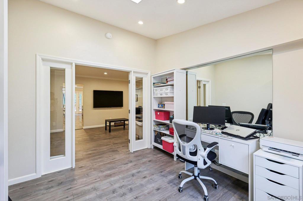 PRIME LA JOLLA SHORES HEIGHTS LOCATION * WEST OF THE 5 FREEWAY * LARGE TOWNHOME ONLY SHARING ONE WALL * BEAUTIFULLY UPGRADED BONUS ROOM DOWNSTAIRS * LARGE BACKYARD * 2 CAR ATTACHED GARAGE WITH EXTRA OUTDOOR PARKING SPACE! Beautifully upgraded and truly impressive, this home makes a stunning first impression the moment you walk through the door, showcasing quality finishes, thoughtful updates, and a layout perfectly designed for comfortable living and entertaining. The fully remodeled kitchen is a standout, featuring gray shaker cabinetry, abundant counter space, sleek quartz countertops, stainless steel appliances, and elegant hardware paired with a striking gold-bronze faucet that adds the perfect designer touch. Throughout the home you’ll find upgraded flooring, crown molding, recessed lighting, 3 skylights that bring in natural light, and a large fireplace anchoring the living room, while a separate family room provides additional space to relax or gather. A versatile optional room or den on the first floor offers flexibility for guests, a home office, or multi-generational living.Upstairs, three spacious bedrooms feature vaulted ceilings that enhance the open, airy feel. The primary suite is truly special, complete with its own private balcony and a beautifully upgraded bathroom boasting a double vanity, soaking tub, matching tile accents, and a walk-in closet. The hall bathroom is equally refined with a designer vanity and walk-in shower, and the convenient upstairs laundry closet makes daily living easy. Step outside to a large backyard that backs to a greenbelt, offering privacy and the perfect setting for entertaining, relaxing, or simply enjoying the outdoors. The two-car garage provides direct access into the home, plus an additional parking space for added convenience. Water is included in the HOA, and the brand-new roof adds even more value and peace of mind. With only one shared wall, this home has the privacy and comfort you want. All appliances convey (including washer and dryer) and 3 mounted TV's.Located in the beautifully tree-lined community of La Jolla Shores Heights, residents enjoy access to a pool, tennis court, and playground, and is just minutes from UCSD (within walking distance), UTC Mall, La Jolla Playhouse, Birch Aquarium, La Jolla Village shopping and dining, Whole Foods, Trader Joe’s, AMC, the trolley station, YMCA, parks, and the world-famous beaches of La Jolla Shores and San Diego's famous beaches. This is the total package — style, comfort, location, and lifestyle all in one!
