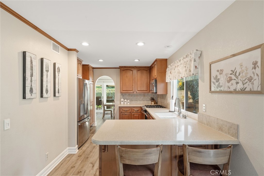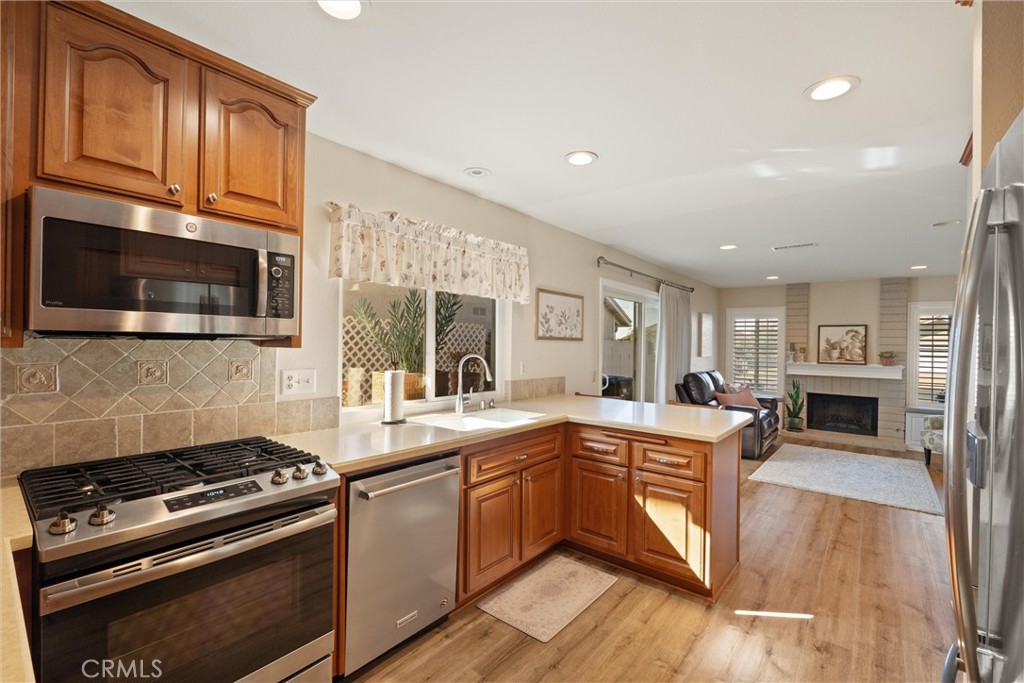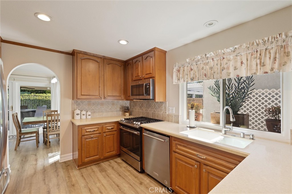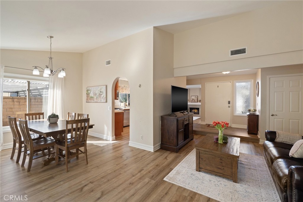 Welcome to this charming single-story home tucked away on a quiet street in the desirable Montiel community of Mission Viejo. The thoughtfully designed layout offers an open, inviting feel that blends comfort and functionality. A light-filled living room with vaulted ceilings flows into a dedicated dining area, creating a warm and welcoming space. The kitchen opens seamlessly to the family room, featuring a cozy brick fireplace and direct access to the backyard, ideal for indoor-outdoor living and entertaining. Additional highlights include an indoor laundry room and a spacious primary suite with a walk-in closet. Residents enjoy lake privileges, nearby parks, and access to Mission Viejo amenities, all within the highly regarded Saddleback Valley Unified School District. Conveniently located near Melinda Park, Lake Mission Viejo, shopping, and dining. A move-in-ready opportunity in a sought-after neighborhood with low HOA dues.