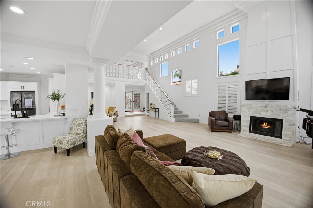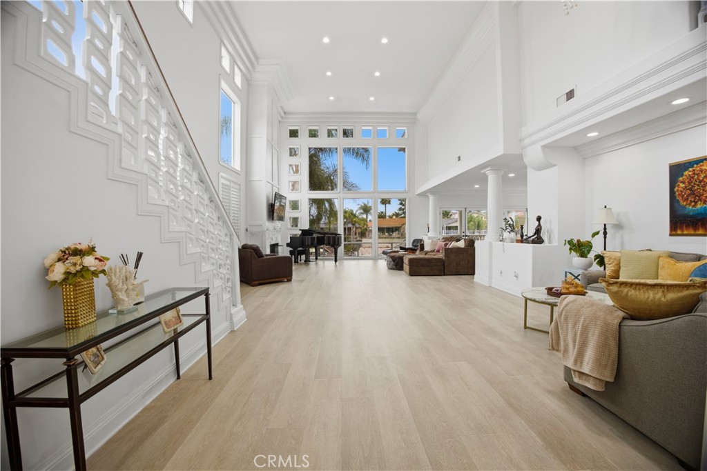 Behind the gates of Canyon Lake, where private beaches and sunset cruises define everyday life, sits a lakefront residence designed to capture light, water, and luxury in perfect harmony. “Casa Molte Finestre” lives up to its name, “House of Many Windows” frame shimmering lake views while soaring ceilings and architectural scale create a sense of openness rarely found in waterfront homes. The great room’s dramatic two-story fireplace anchors the space, flowing effortlessly into a refined chef’s kitchen adorned with quartz surfaces, black stainless-steel appliances, breakfast bar, pantry, and generous cabinetry with abundant storage — ideal for entertaining or everyday living. Upstairs, the primary suite becomes your personal sanctuary, featuring vaulted ceilings, a fireplace that creates warmth and intimacy, and a private balcony overlooking the lake. The spa-inspired bath evokes a luxury retreat, featuring a freestanding soaking tub, walk-in shower, dual vanities, and expansive dual walk-in closets designed with boutique-level elegance. Outside, enjoy the lake view from the terraces for sunset dinners and morning coffee. A newly added above-ground spa enhances the resort atmosphere, along with your private covered dock and boat lift, which places boating just steps from your door. A redesigned private courtyard sets an elegant tone upon arrival, with soaring palm trees and an attached three-car garage featuring new designer garage doors and a dedicated EV charging station — seamlessly integrating modern convenience with elevated curb appeal. Besides private beaches, Canyon Lake offers a resort lifestyle including a championship golf course, restaurants, parks, playgrounds, tennis, pickleball, and basketball courts, equestrian facilities, sports parks, and a private campground. This is not simply a lakefront home, it is a distinguished waterfront estate — a statement of luxury and lifestyle within one of Southern California’s most coveted gated communities.