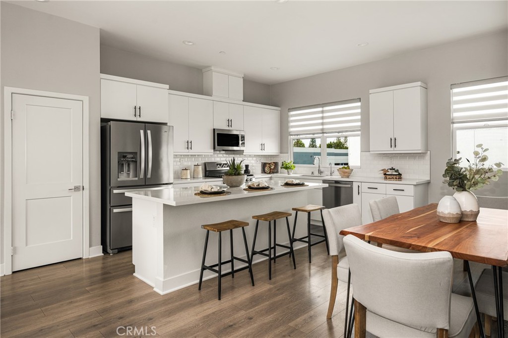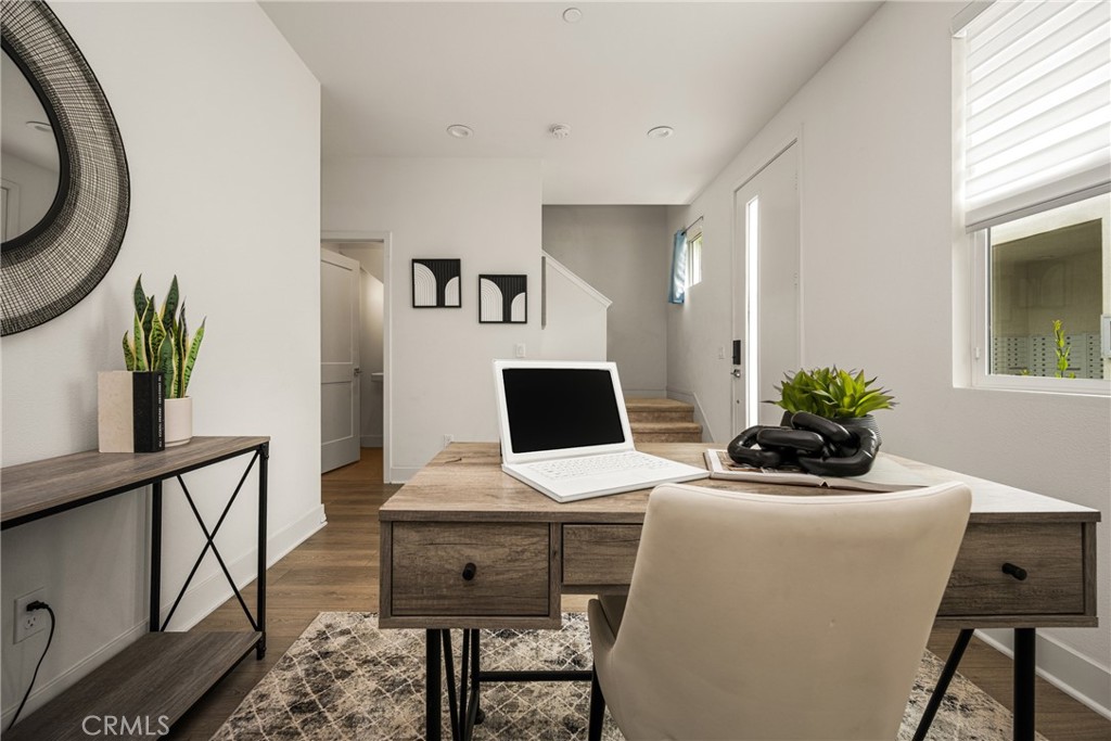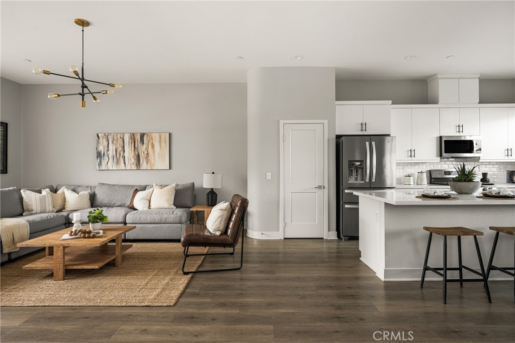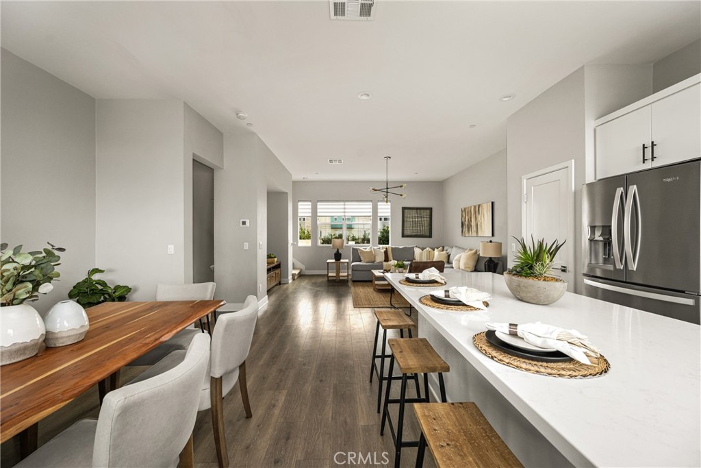 Turnkey Modern Townhome in the heart of Anaheim’s Platinum Triangle featuring 3 Bedrooms plus a Den, a PRIVATE ROOFTOP DECK, and a direct-access 2-car garage. Ideal for a first-time buyer or investor, with strong rental potential of approximately $4,300 per month. Tucked toward the back of the community, the home offers enhanced privacy in a prime location. The thoughtfully designed floor plan begins with a Den and Powder Room upon entry, providing flexible space for a Home Office, Gym, or sitting area. The Second Level showcases an expansive, light-filled Great Room with high ceilings and walls of windows that flood the space with natural light. The open Chef’s Kitchen is designed for entertaining and features white shaker cabinetry, quartz countertops, a white subway tile backsplash, stainless steel appliances, and an oversized island that flows seamlessly into the Dining Area and Great Room. The Third Level offers 3 generously sized bedrooms, including a luxurious Primary Suite with a spa-inspired bathroom, dual vanities, walk-in shower, and a large walk-in closet. secondary bedrooms are thoughtfully positioned at the opposite end of the hall and share a spacious guest bathroom with a soaking tub. Laundry is conveniently located on this level. Escape to the Oversized Private Rooftop Deck to enjoy stunning City and Pool Views. Perfect for relaxing, entertaining, and stargazing, this space truly elevates the home. Energy-efficient features include EV charging, a tankless water heater, and a dual HVAC system. Located just minutes from Disneyland, the Honda Center, Angels Stadium, the exciting OCVIBE development, and major freeways. Modern living, low maintenance, and an unbeatable location that puts you right in the center of it all. This is a must-see.