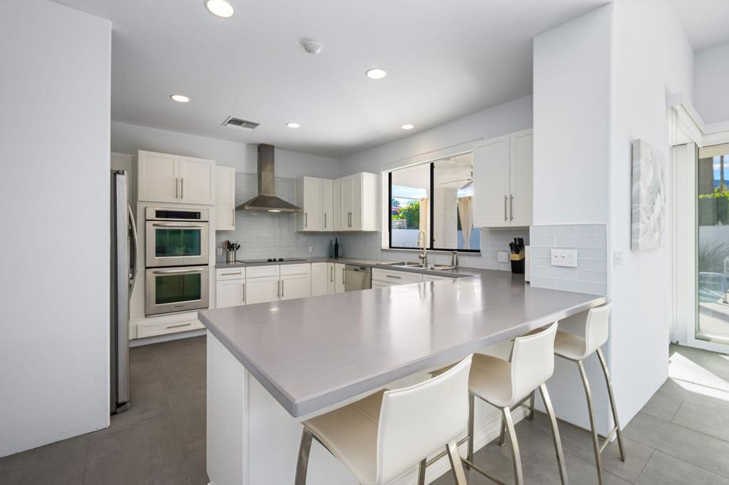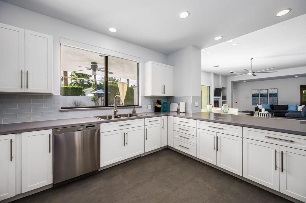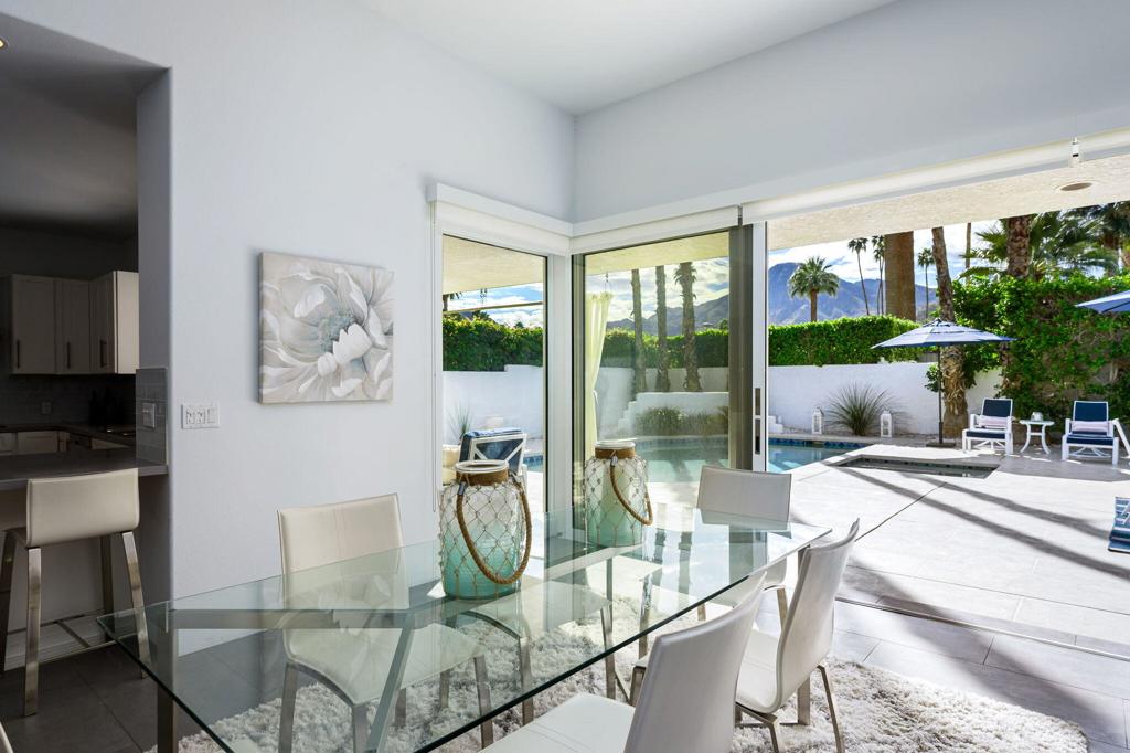 Stunning South-facing Mountain Views highlight this beautifully updated 4-bedroom home, thoughtfully designed and built by renowned developer Philip Manuel. Showcasing quality craftsmanship and timeless design, this exceptional home offers both elegance and comfort in every detail, with upgraded tile flooring and a spacious Living Room featuring a fireplace and multi-slide doors for seamless indoor-outdoor living. The updated Chef's Kitchen features crisp white cabinetry, stainless steel appliances, and a functional layout ideal for both everyday living and entertaining. Updated bathrooms, modern finishes and stylish fixtures. The spacious Primary Suite is a private retreat featuring a spa-inspired bath, walk-in closet, and multi-slide doors that open directly to the Pool and stunning Mountain views. 2 Guest Bedrooms feature en-suite baths providing comfort and privacy and private patios. Step out to the back patio and enjoy beautiful desert evenings by the Pool and Spa surrounded by breathtaking vistas. A 2 car garage plus a dedicated golf cart garage. A rare opportunity to own a meticulously updated home with sought-after southern exposure and spectacular views in prestigious Indian Wells.