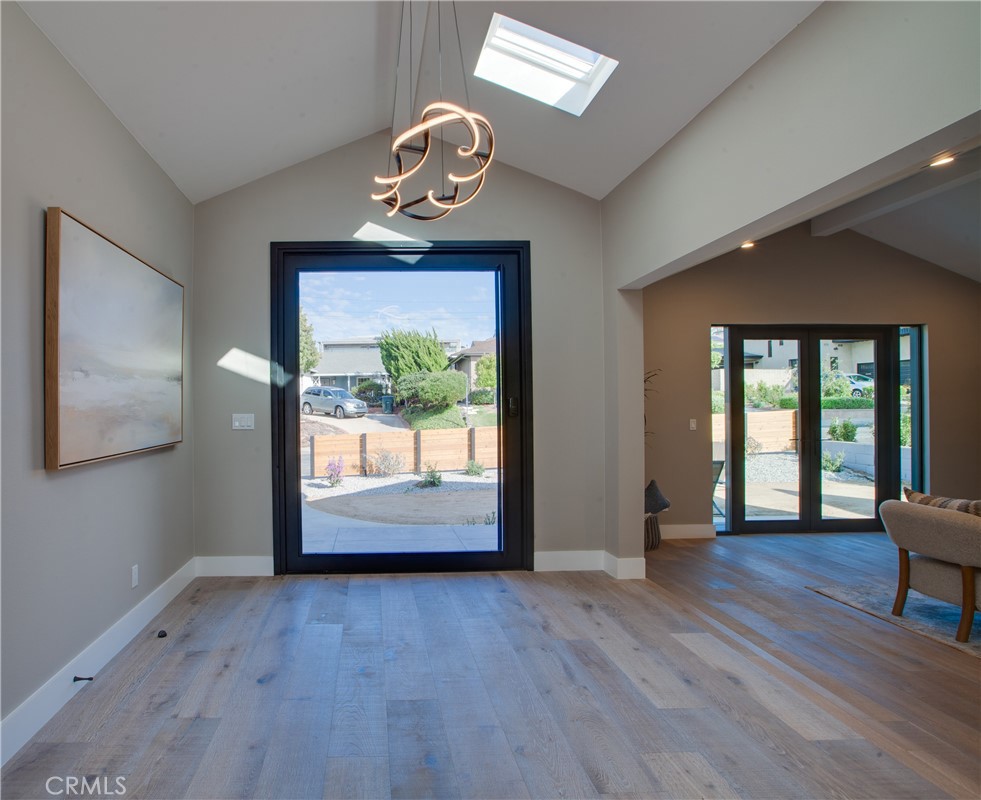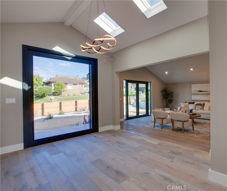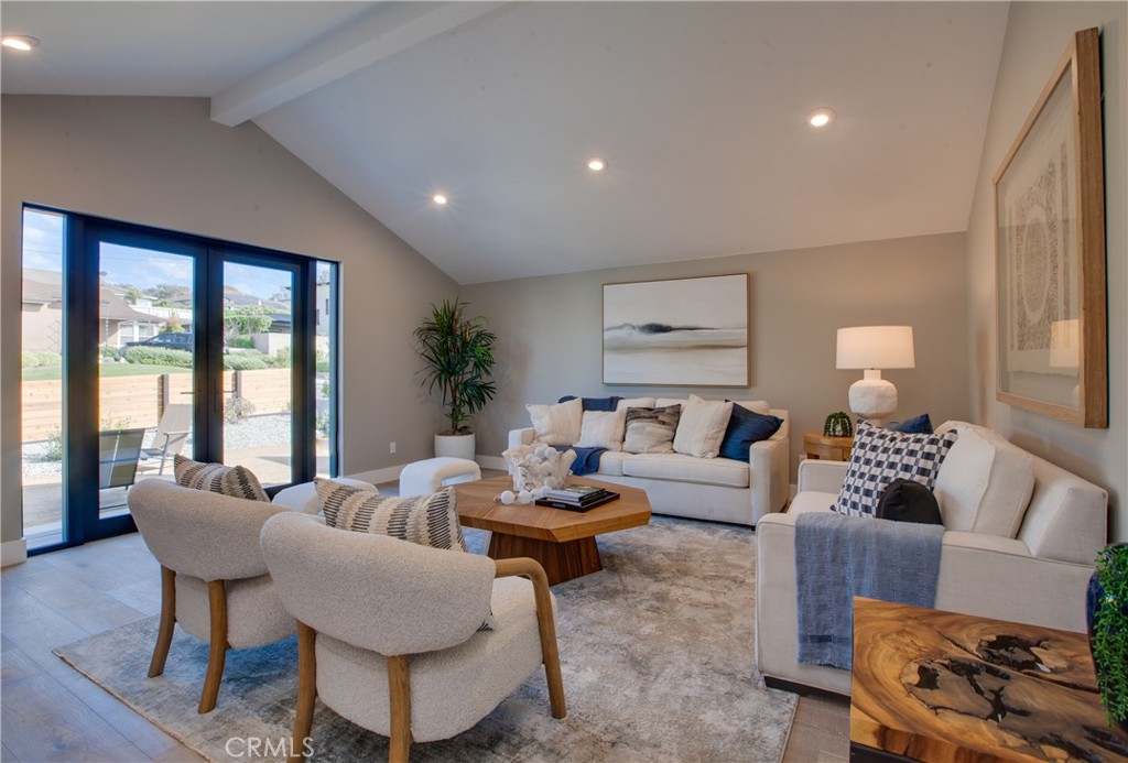 A Contemporary coastal ranch with modern farmhouse elements. The dark vertical siding paired with warm wood garage doors and trim provides a strong contrast and upscale curb appeal; Linear sconces add modernity and make the exterior glow at dusk, emphasizing architectural lines. A new horizontal cedar fence frames the lot, blending with the wood tones of the home. Minimalist landscaping (gravel, succulents, and low-water plants) suits a coastal climate and low-maintenance lifestyle. This coastal luxury retreat in the Hollywood Riviera has been newly reimagined to blend modern design with timeless finishes, offering three bedrooms and three bathrooms across an open floor plan filled with natural light. Sweeping ocean and sunset views define the living experience, with expansive picture windows and sliding glass doors connecting every major space to the outdoors. The rear living room is the architectural highlight, featuring vaulted ceilings with exposed wood beams and custom integrated LED lighting that accentuates the dramatic wood-plank detail overhead. A seamless flow leads into the dining area and designer kitchen, where quartz counters, premium stainless steel appliances, custom cabinetry, and an oversized island create a stylish and functional space for both entertaining and everyday living. The private master suite opens directly to the deck and includes a generous walk-in closet and a spa-style bath with dual vanities, modern tilework, and a walk-in shower. Two additional bedrooms and two full baths provide flexibility for guests, family, or office use. Outdoor living is equally impressive, with multiple view decks oriented toward the Pacific, blending indoor comfort with breezy coastal elegance. The contemporary exterior showcases stone and wood accents, complemented by drought-tolerant landscaping and a two-car garage with custom doors. Located just moments from Riviera Village, sandy beaches, dining, and award-winning schools, this residence embodies the best of Southern California coastal living. Due to the numerous inquiries during the development of this home, it is not expected to stay on the market long. Hurry, this one won't last.
