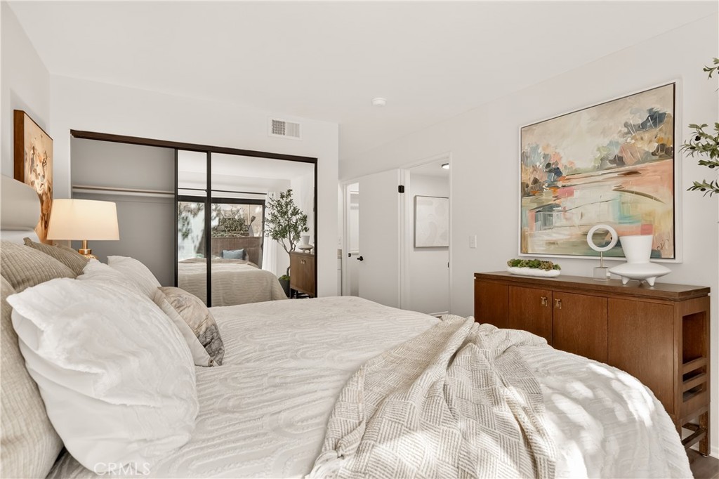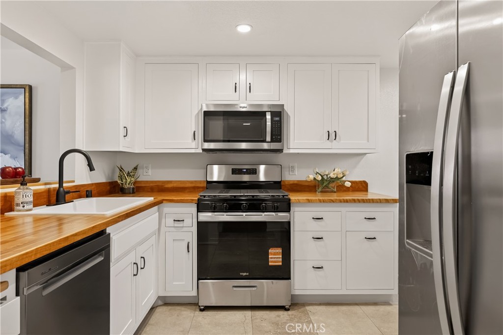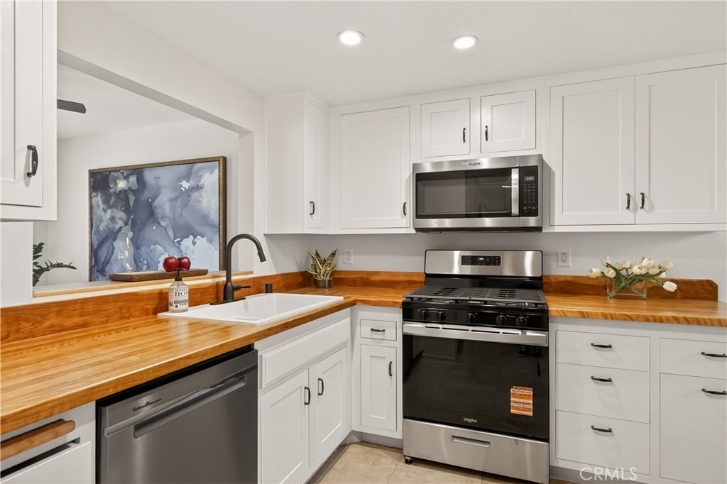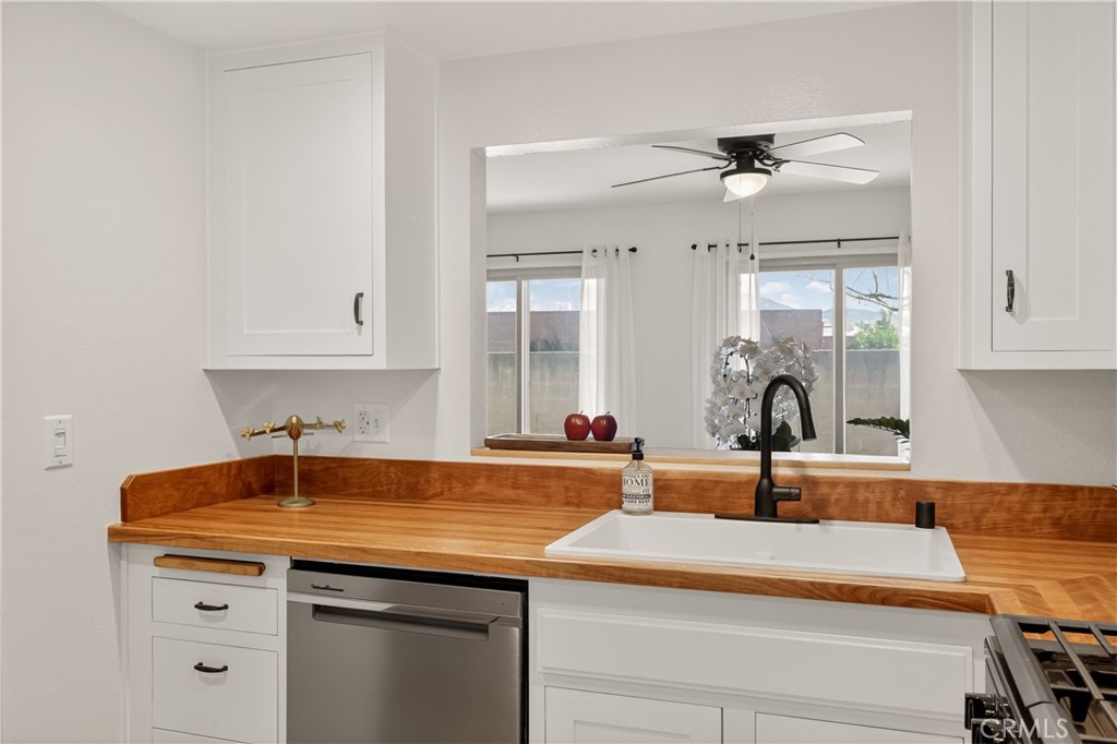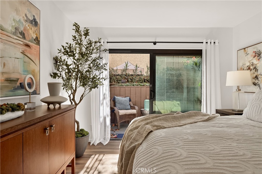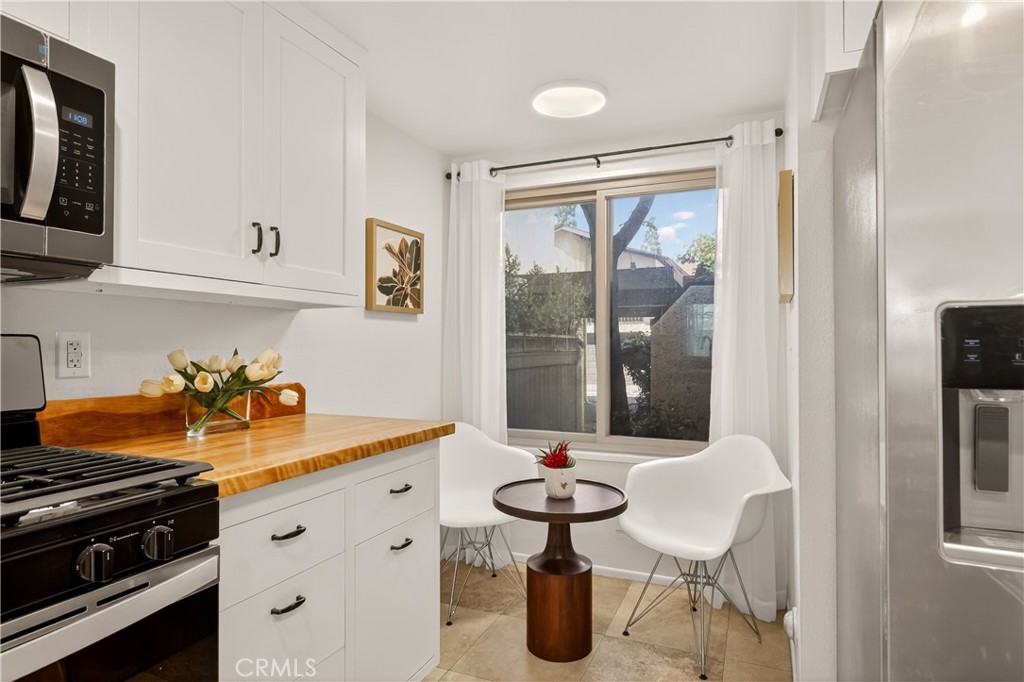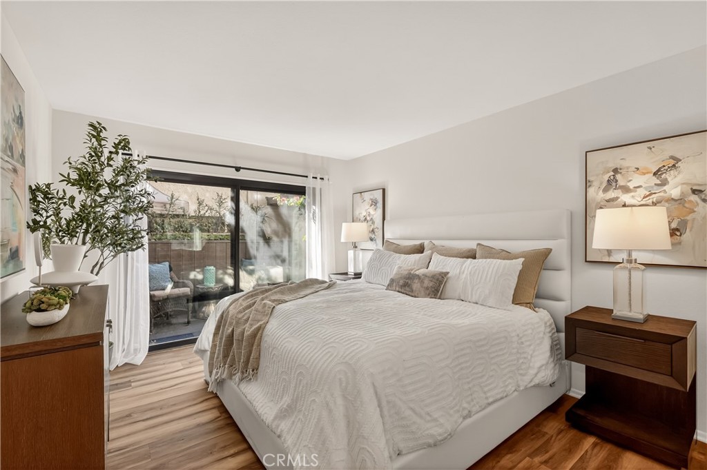 As you enter the home you are immediately welcomed by wood floors throughout, a romantic fireplace, eastern facing windows, and a perfect size dining area. The kitchen, complete with butcher block countertops, white shaker style cabinets, and a breakfast nook also has an open counter area making this a great place to entertain friends and/or family. As you head towards the back of the unit you pass the washer dryer closet. Down the hall you find the guest bath on your right with ample counter space on the vanity and a shower-tub combo. Across the hall is the guest bedroom. At the end of the hallway you find the primary suite complete with his and hers closets and a patio area off the bedroom. This wonderful community comes with a pool and hot tub, a single garage spot, as well as a second covered parking spot. If you are looking for an adorable home at a great value then this is a must see.