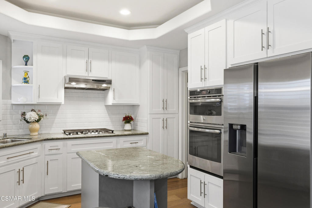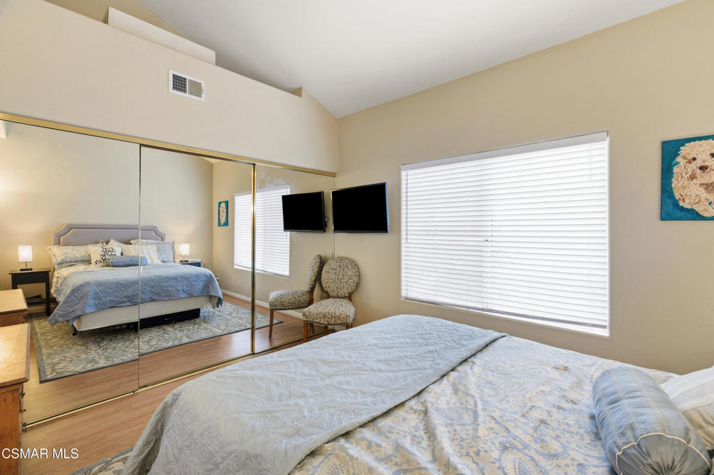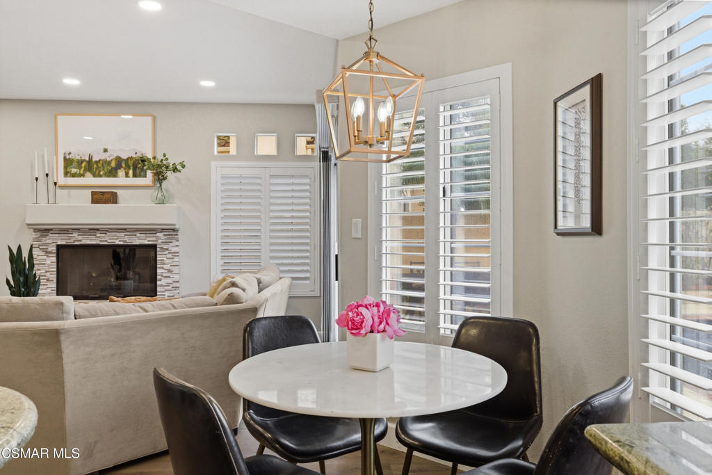 Located in a desirable Thousand Oaks neighborhood with amazing views of the Topa Topa Mountains, this 4-bedroom, 3-bath home offers approximately 2,640 square feet and a highly functional floor plan designed for both comfort and flexibility. A full bedroom and bath on the main level provides ideal space for guests, extended family, or a private home office. The main level features mid-tone wood flooring and connected living spaces, with the kitchen opening directly to the family room and the formal dining area flowing into the living room. Vaulted ceilings and abundant natural light enhance the sense of space throughout. The kitchen includes granite countertops, stainless steel appliances, a center island, and a white subway tile backsplash. Upstairs features a spacious loft ideal as a secondary living room or playroom, along with two secondary bedrooms and a generous primary suite complete with a peekaboo fireplace, dual sinks, separate shower, soaking tub, and a walk-in closet with built-in organizers. All bedrooms include closet built-ins for added storage and functionality. The beautifully landscaped backyard offers a pool and spa, usable grass area, lemon/avocado trees and a dedicated space ready for a future BBQ setup -- all framed by mature landscaping and perimeter walls and set against stunning Topa Topa Mountain views. The yard is designed for both relaxation and entertaining. Additional highlights include indoor laundry and a 3-car garage with one bay currently configured as office space. Conveniently located on a quiet peaceful street near parks, schools, and shopping.