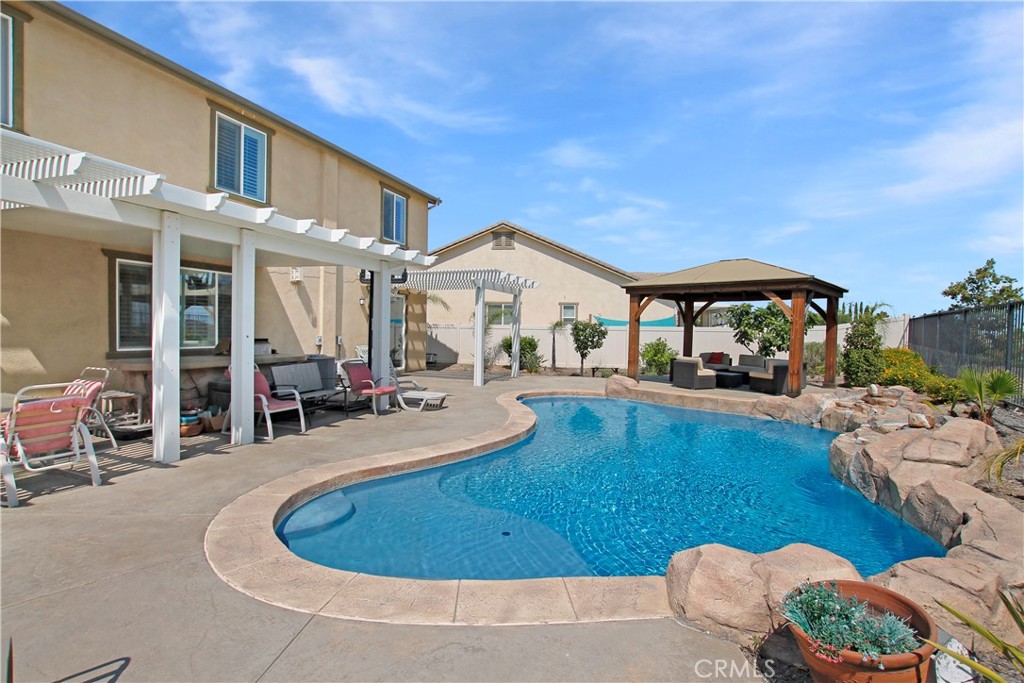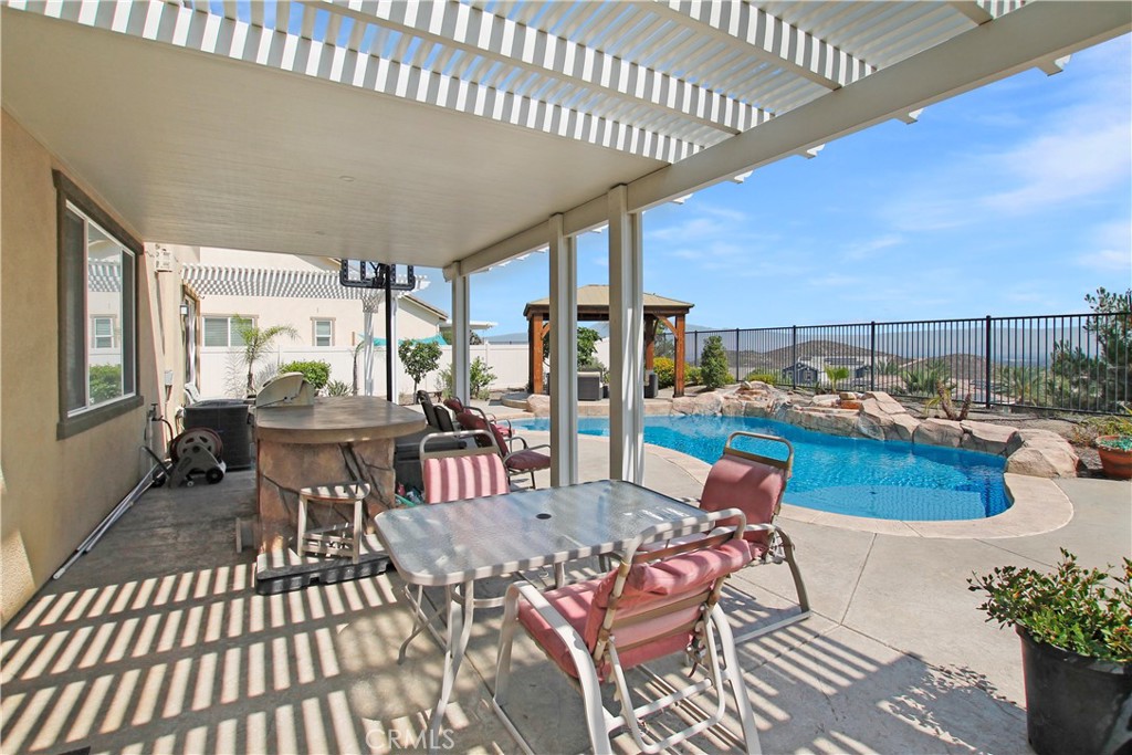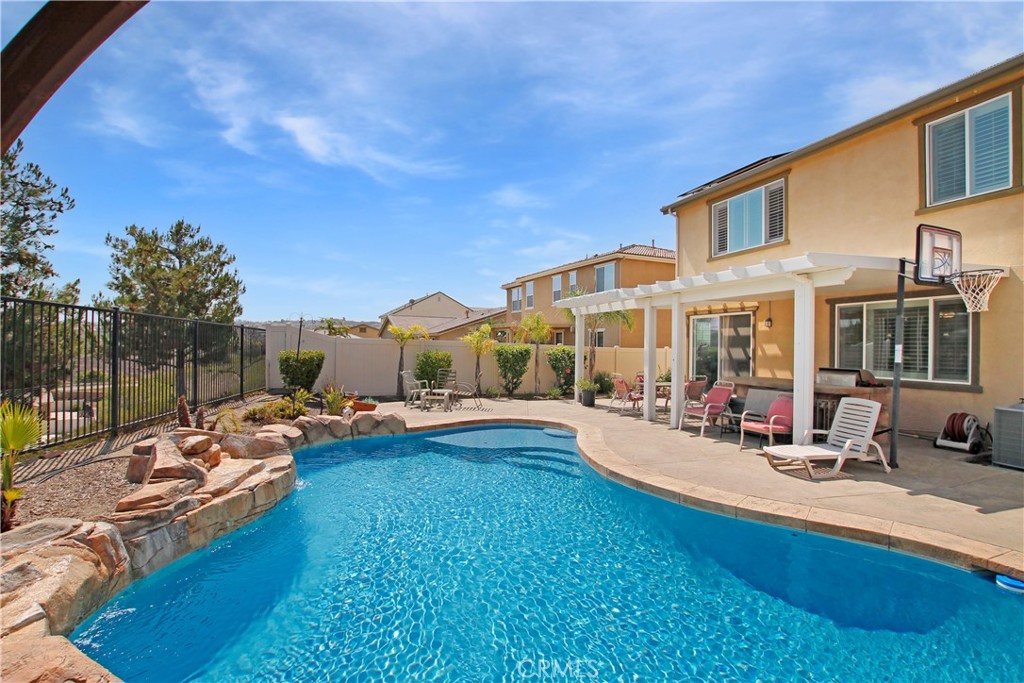 VIEW! POOL! NEXT GEN! Welcome to 13122 Capricornio Street, a beautifully maintained residence nestled in a tranquil Riverside neighborhood. This exceptional property offers versatility, comfort, and impressive amenities for multi-generational living or potential rental income. The main home features 5 spacious bedrooms and 3-1/4 bathrooms with an open-concept layout that flows seamlessly from the updated kitchen to the light-filled living and dining areas—perfect for both daily living and entertaining. A standout feature of this home is the attached 2-bedroom Next-Gen suite with its own private entrance, full kitchen, living area, and bathroom—ideal for extended family, guests, or independent living arrangements. Step outside to a backyard designed for enjoyment and relaxation, where you'll find a sparkling pool with it's own solar heating, covered patio, large pergola, and beautifully maintained landscaping. Enjoy serene panoramic views of the surrounding hills and city lights, offering a peaceful backdrop to your outdoor gatherings. Located near parks, schools, and shopping, this property combines thoughtful design, energy-efficient upgrades, and flexibility to accommodate a variety of lifestyles—all in one of Riverside’s most desirable communities.