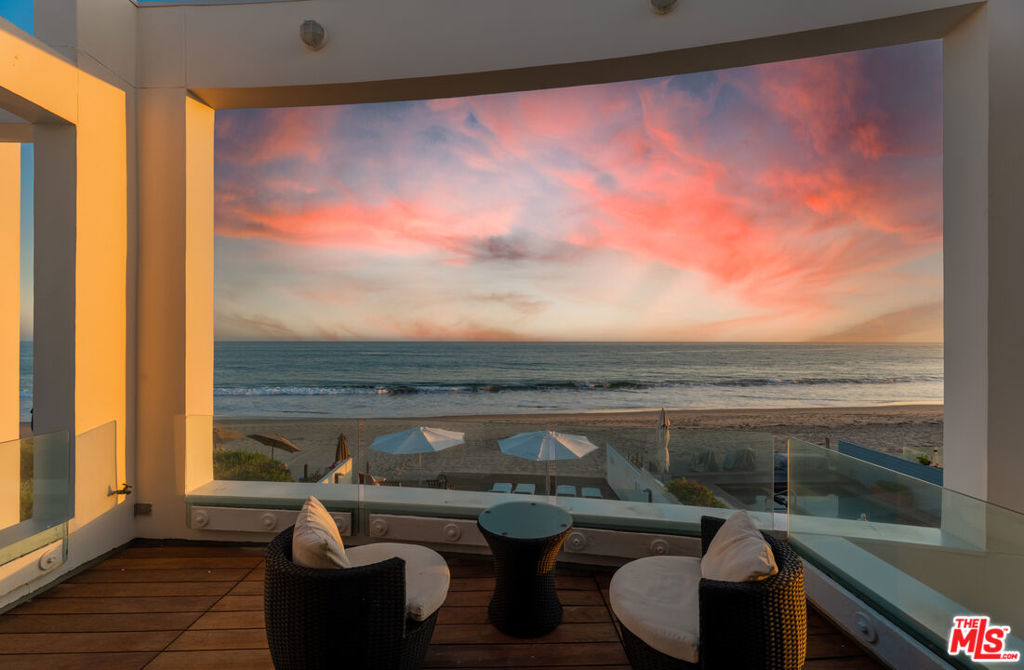 Located on the deepest part of sandy Malibu Colony beach, this stunning, newly remodeled architectural residence evokes the essence of Malibu beach sophistication. Gated for privacy, one enters into a fully landscaped courtyard where they are greeted by a modern water feature which leads to a large glass and beam enclosed entry. The impeccably furnished dining and living areas are as inviting as they are inspiring with soaring ceilings, recessed cove lighting, retractable buffets, significant art walls, contemporary fireplace and an ocean side wall of glass. Show off your culinary skills in style while watching the waves break in this newly completed entertainer's kitchen, which showcases gorgeous stone finishes, Miele appliances and touch-open cabinetry for that extra touch of class. The comfortable den includes a chic gallery wall of photography and display shelves for your collections. A private stairway takes you past the office alcove to the ocean view master suite and bath equipped with a glass privacy partition, skylights that allow you to star gaze from the bed, as well as a sitting area and oceanfront patio. There are three additional en-suite bedrooms and a detached studio perfect for live-in staff or visiting friends. There is an internal courtyard opposite the entry for casual conversation over a fire pit. The spacious beachfront patio with pool, spa, lounging and dining areas is the dream location for entertaining friends or a peaceful retreat for relaxing. The height of luxury in the heart of Malibu's 'Gold Coast' awaits! Call for annual pricing.